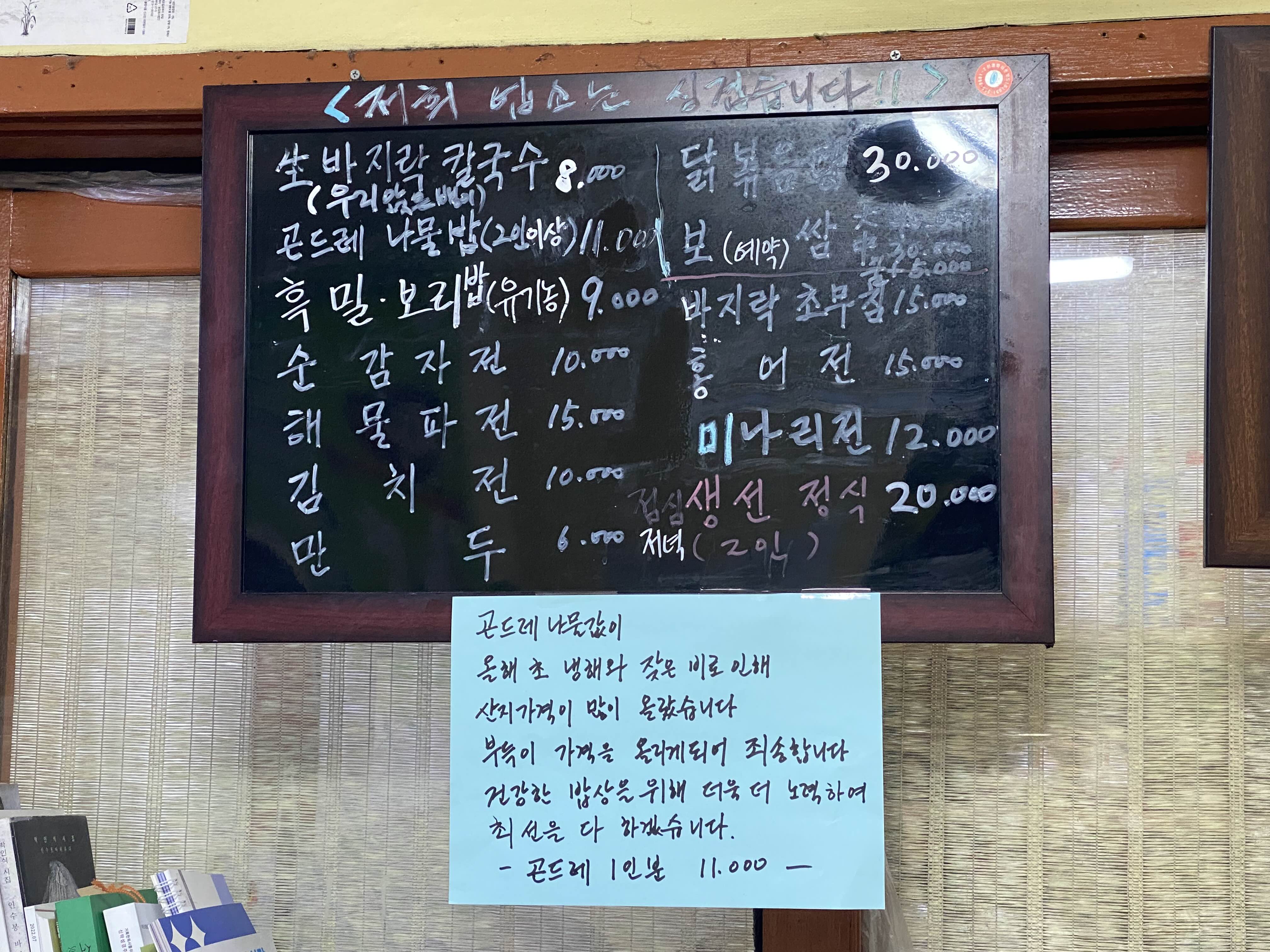 바지락 칼국수 아래 적힌