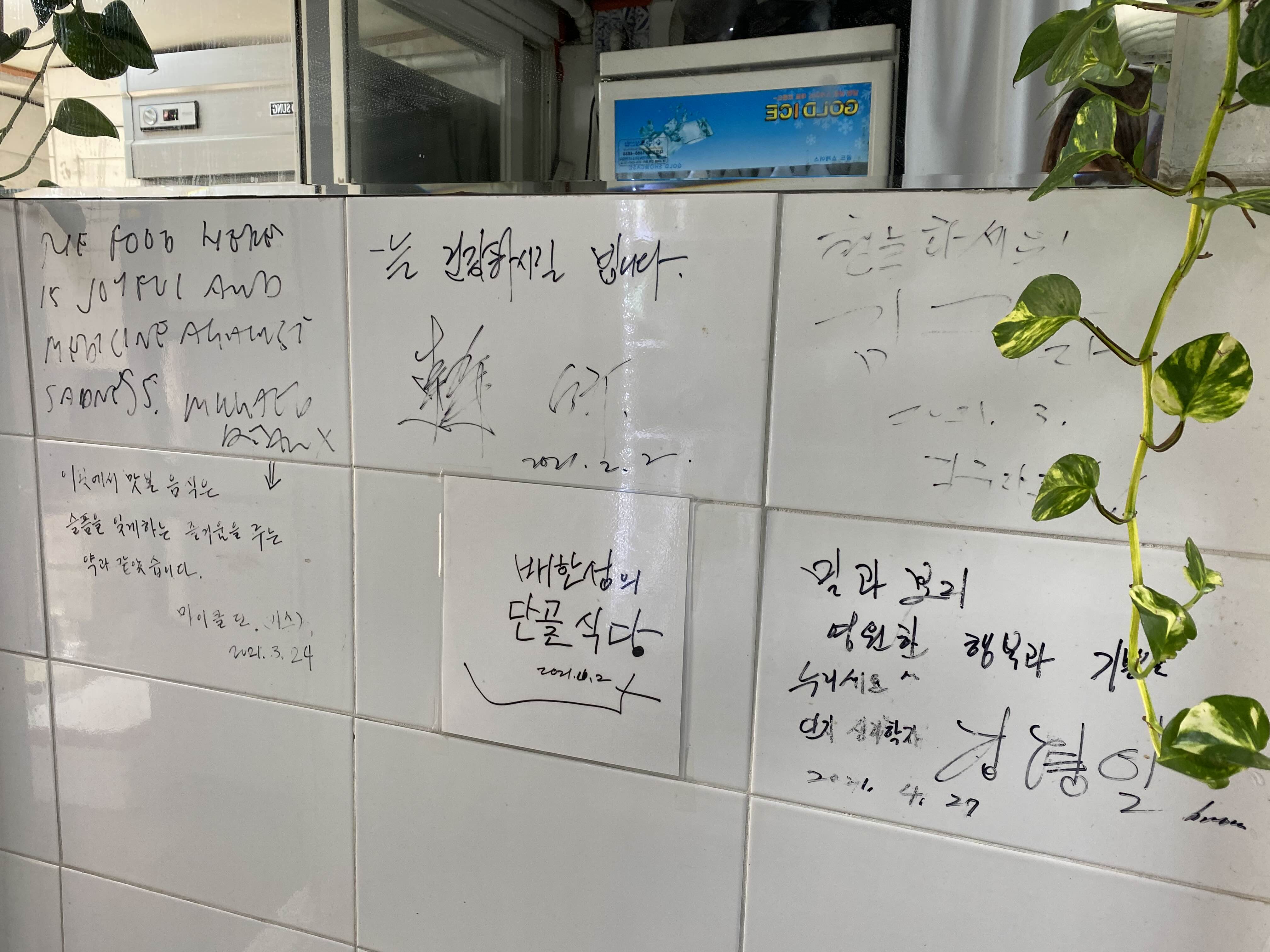 특이하게도 타일에 직접 적은 싸인들이 있다.