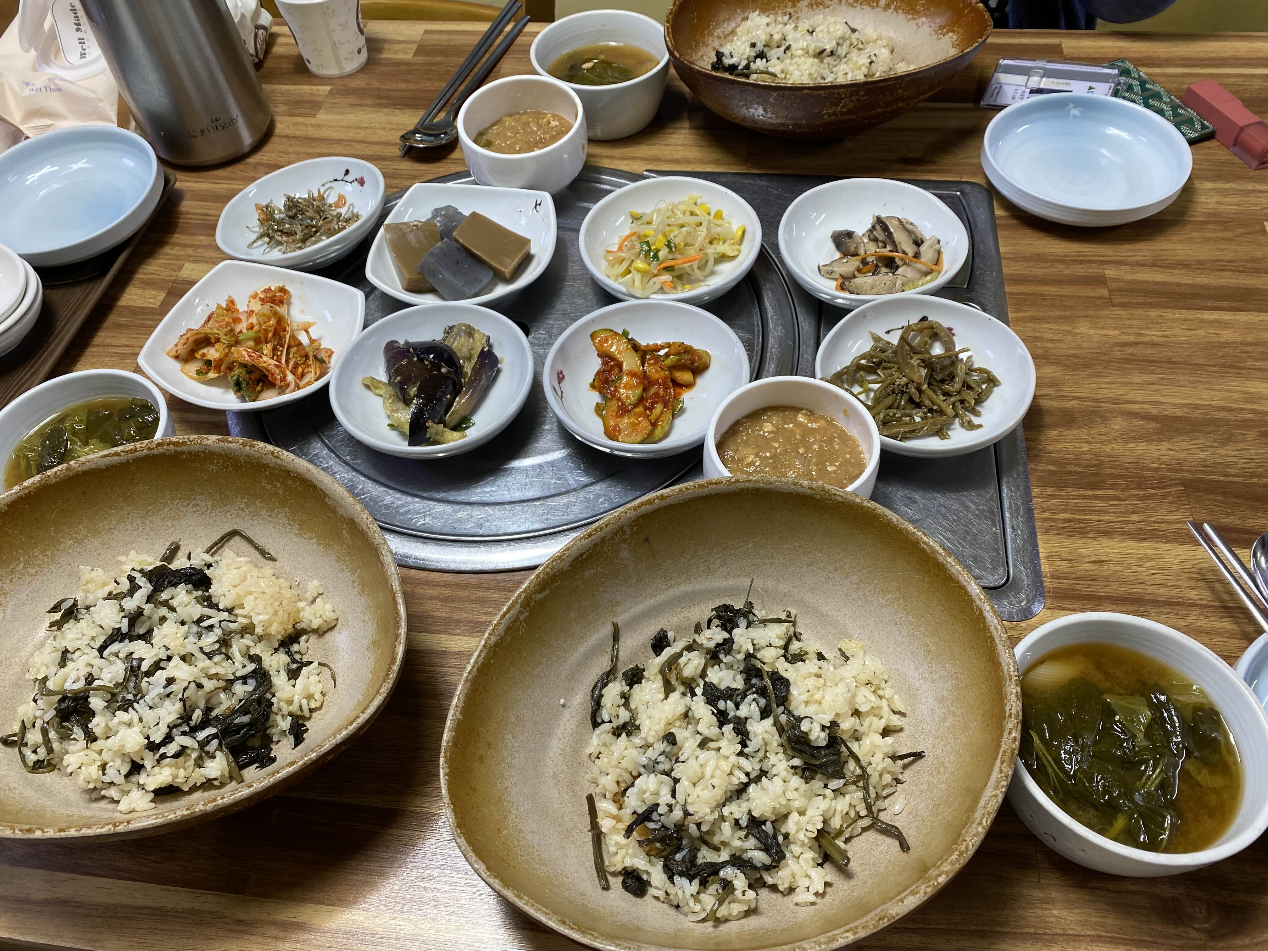 다양한 반찬과 곤드레밥, 된장국이