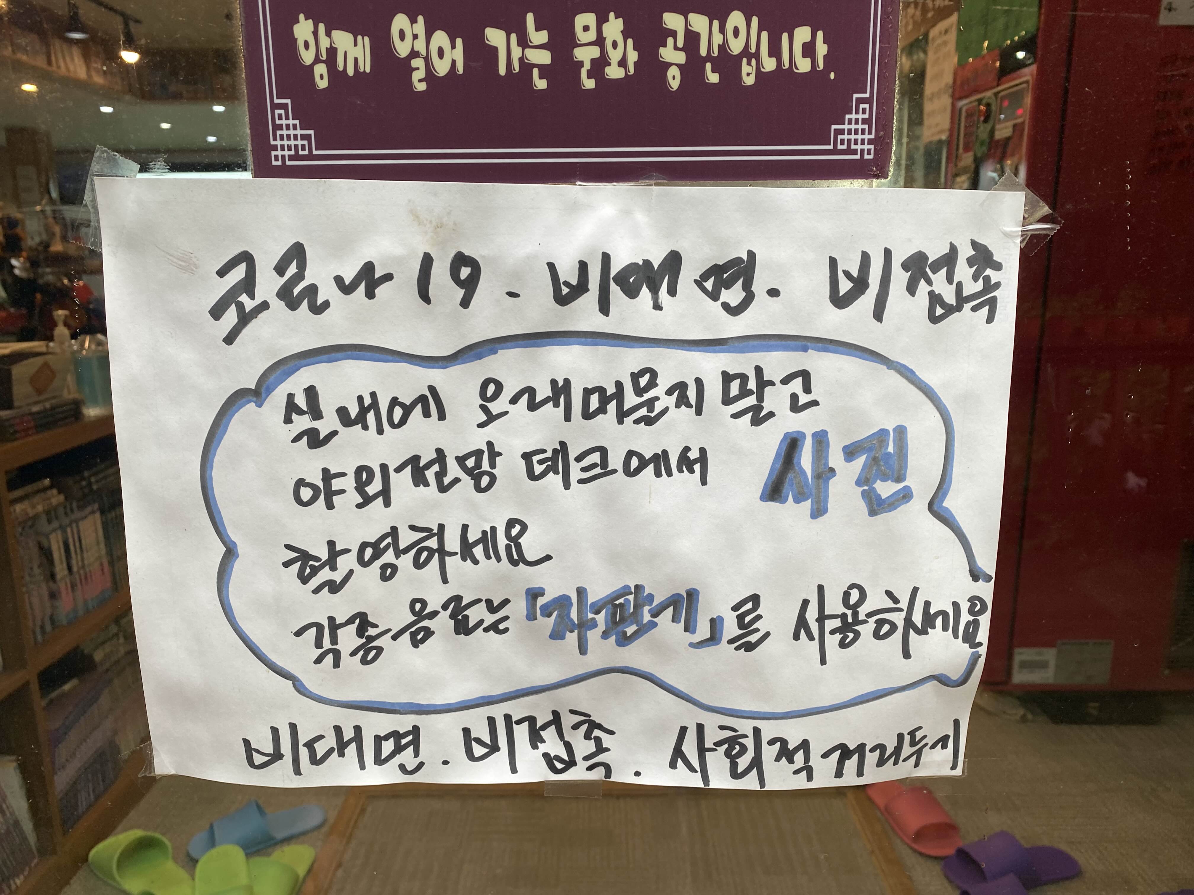 자판기 이용 후 야외데크를 이용하라고 하셨지만