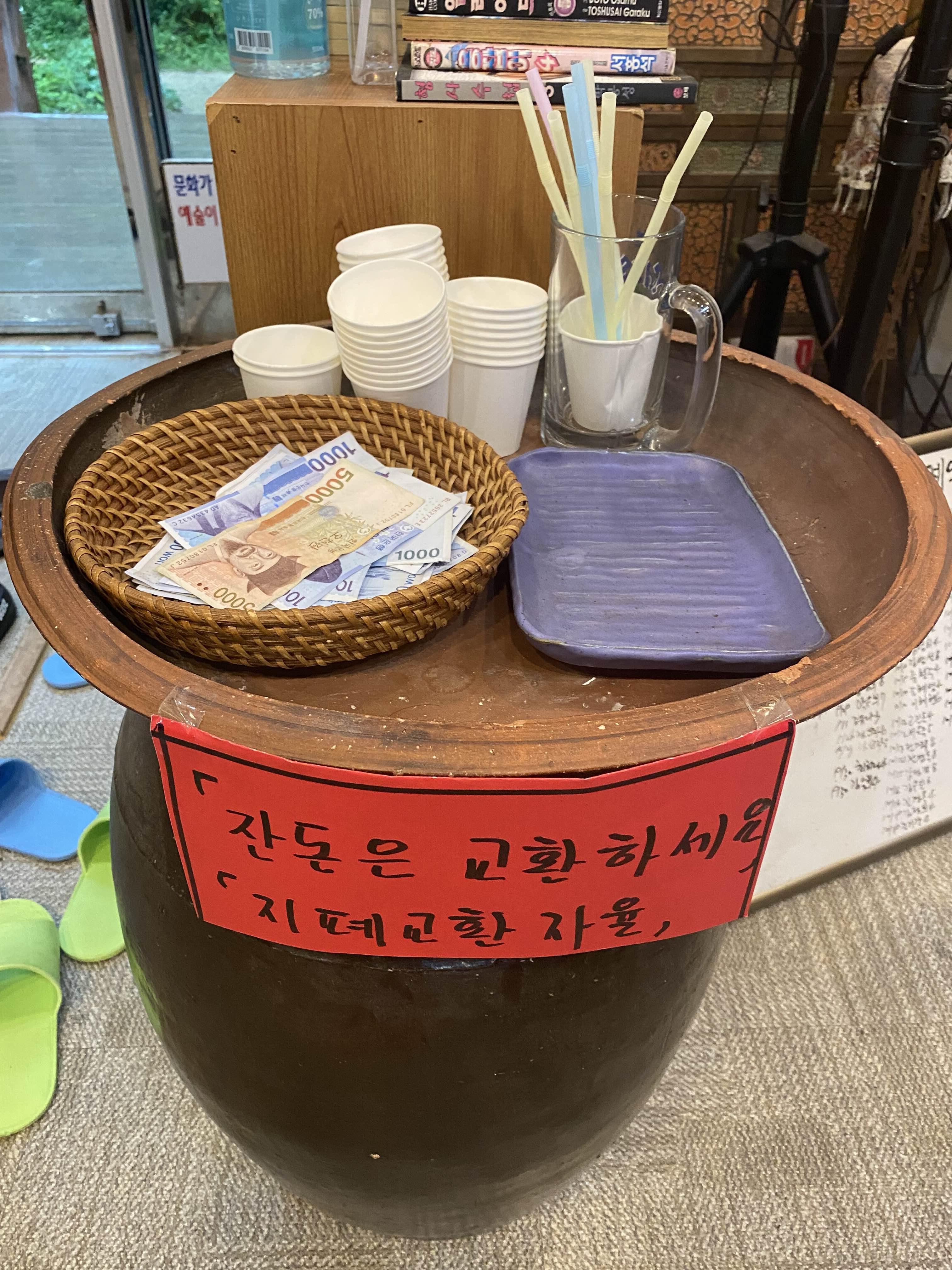그럼에도 아무도 돈 바구니에 손대지 않는 건