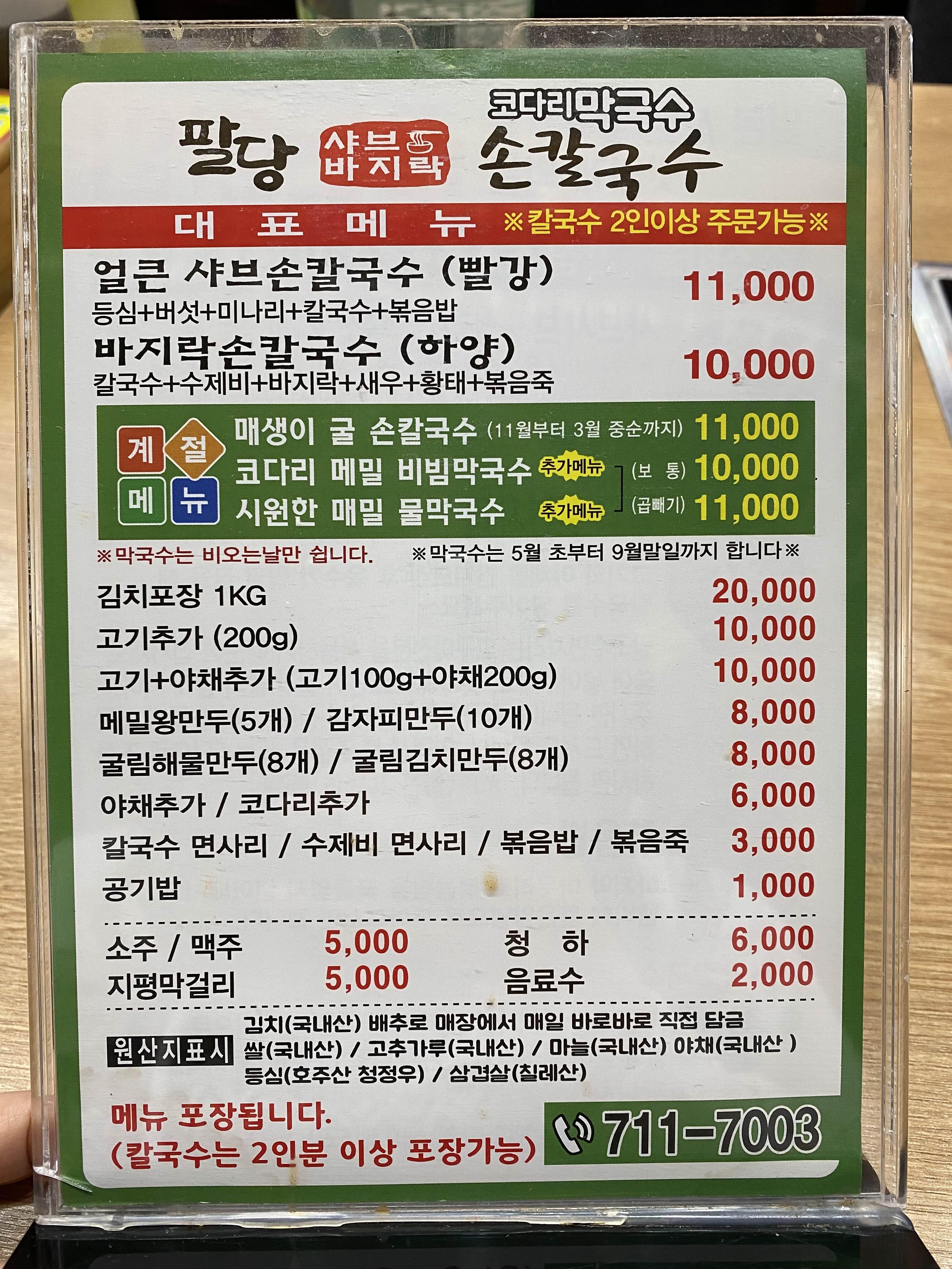 팔당샤브손칼국수집의 메뉴와