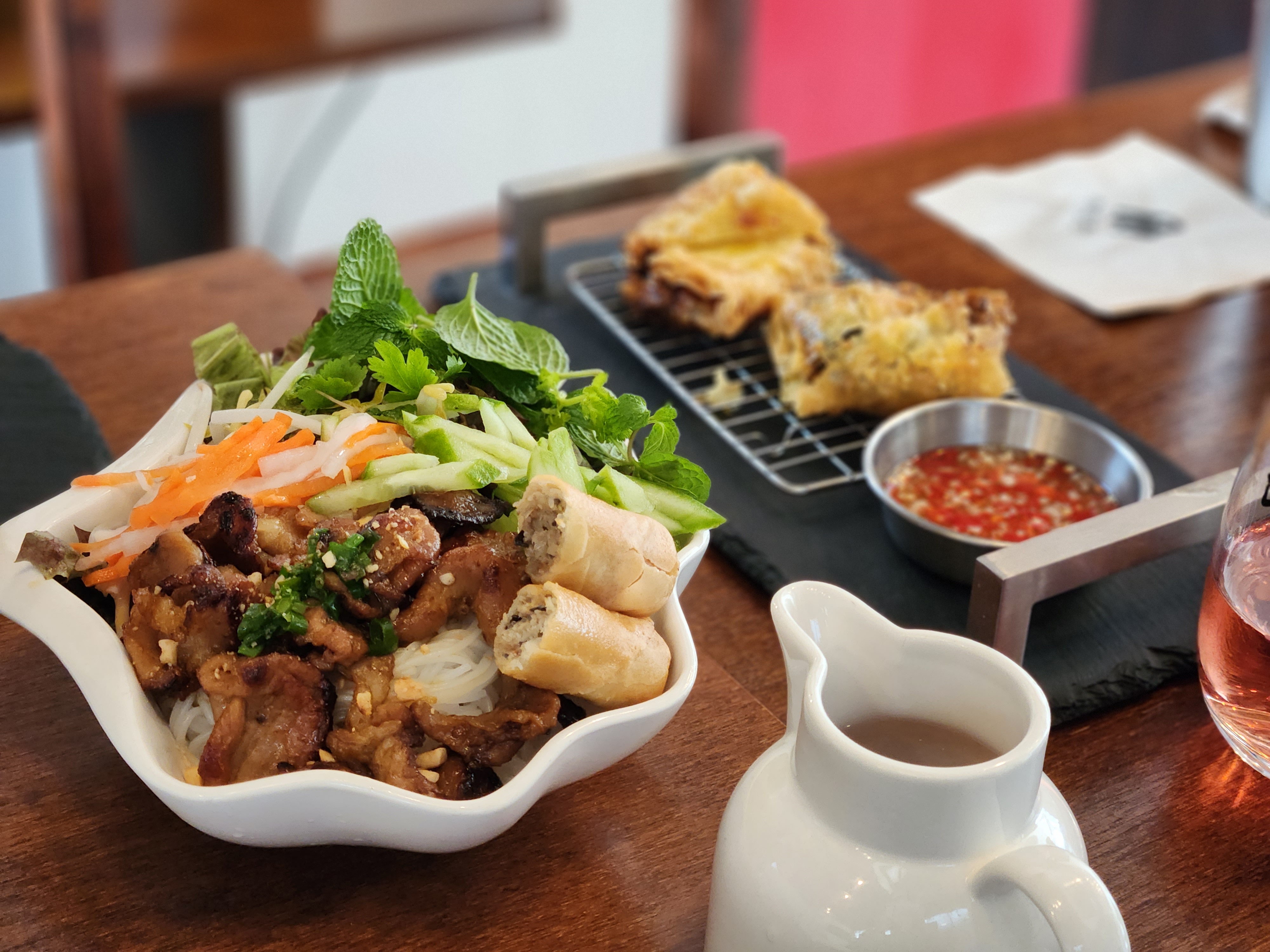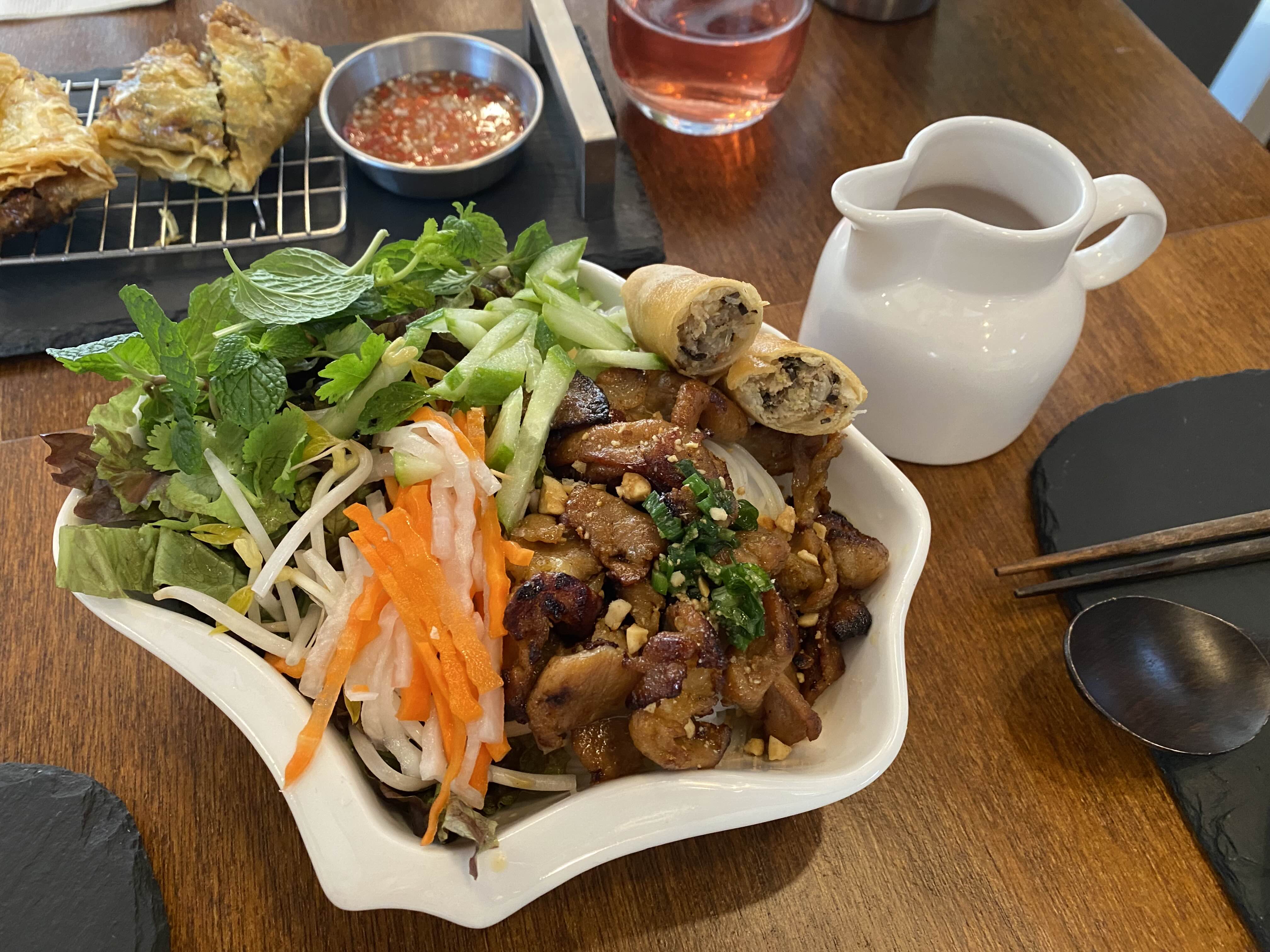 직화쌀국수와 분팃느엉, 사이드로는 넴을 주문하고