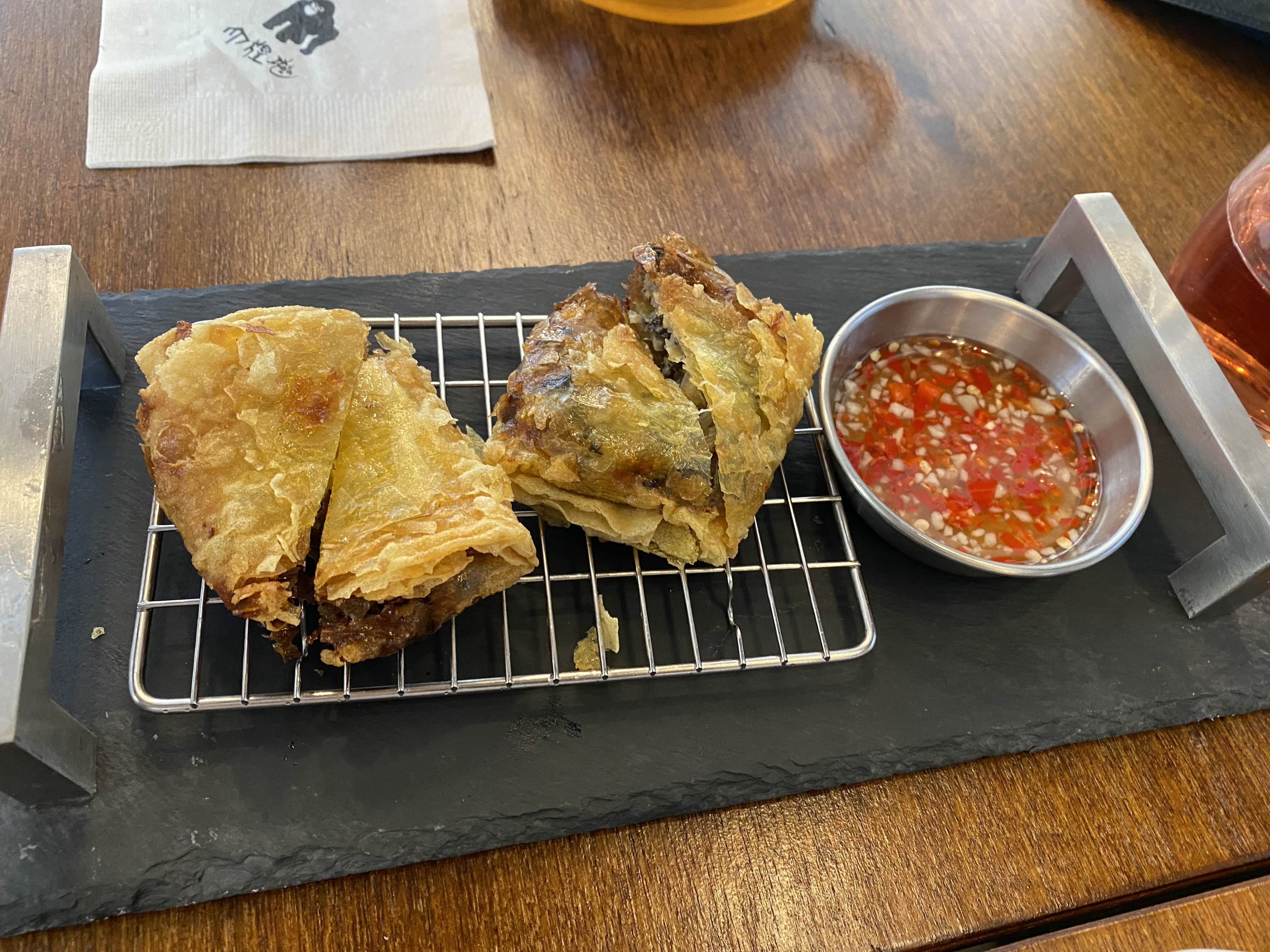 위쪽에 라이스페이퍼를 몇 겹 겹쳐 튀겨낸 건지