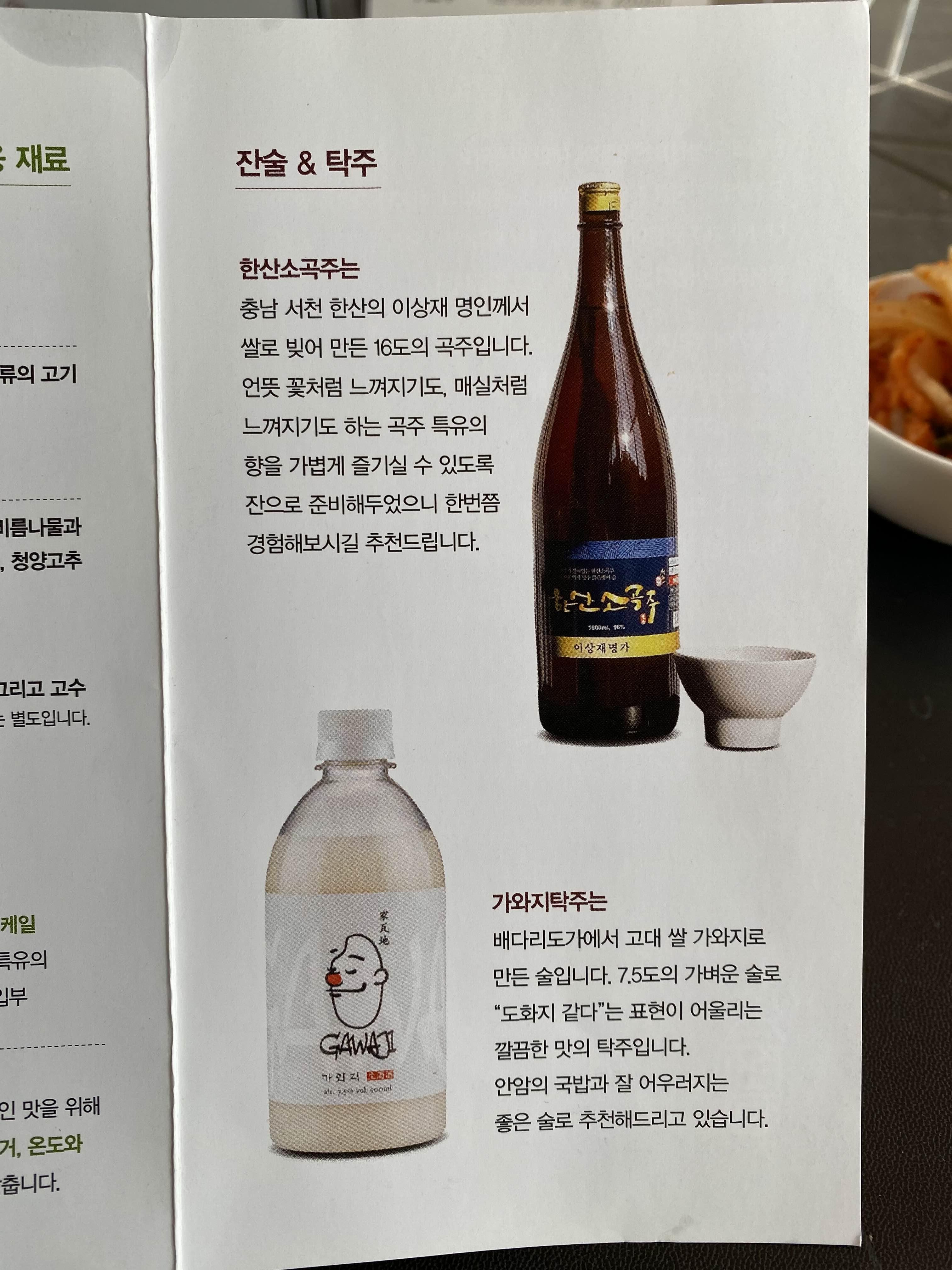 다음에는 가와지탁주를 주문해 보고 싶다.