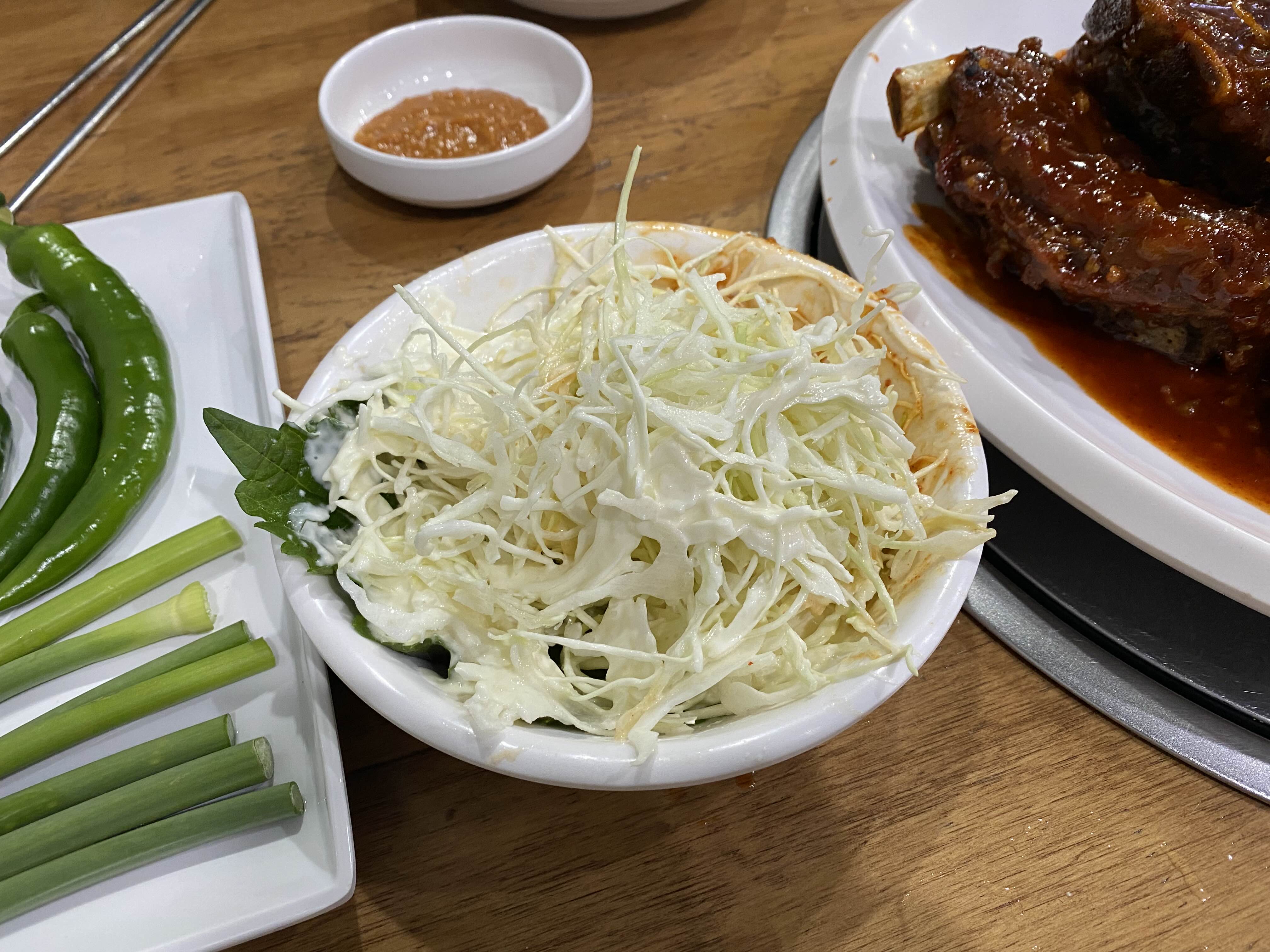 한쪽에는 양배추 샐러드가 나오는데