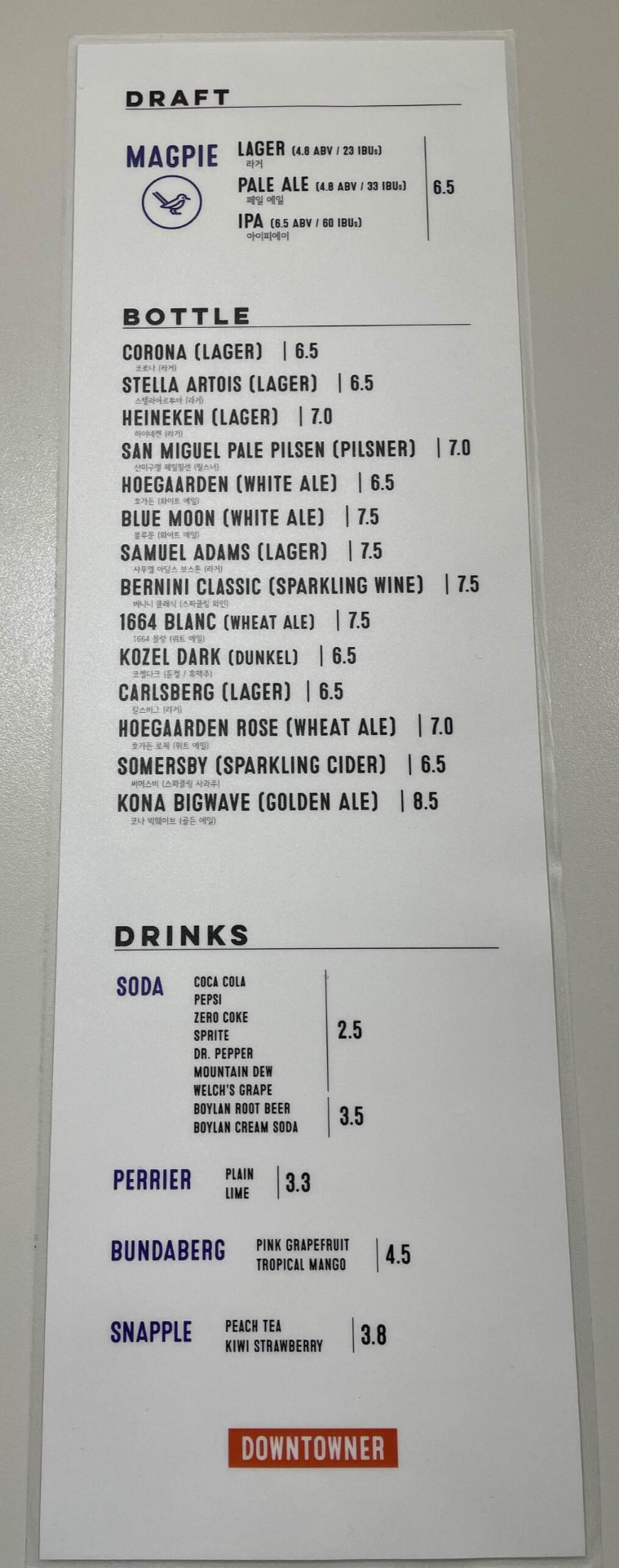 음료는 생맥주부터 병맥주, 음료수, 탄산수까지