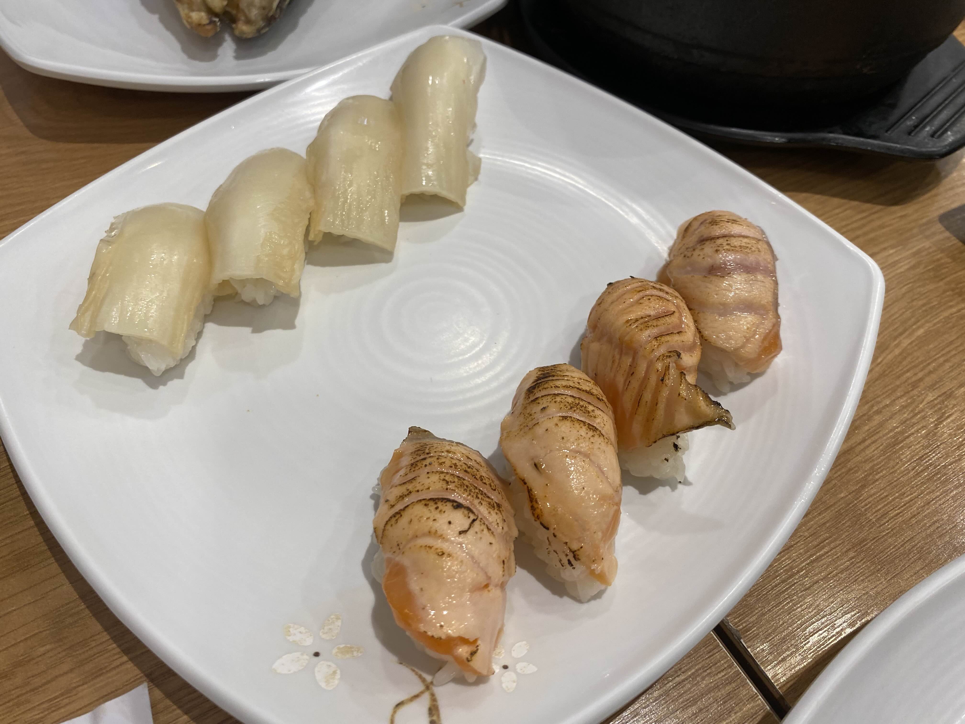 묵은지초밥과 연어아부리초밥.