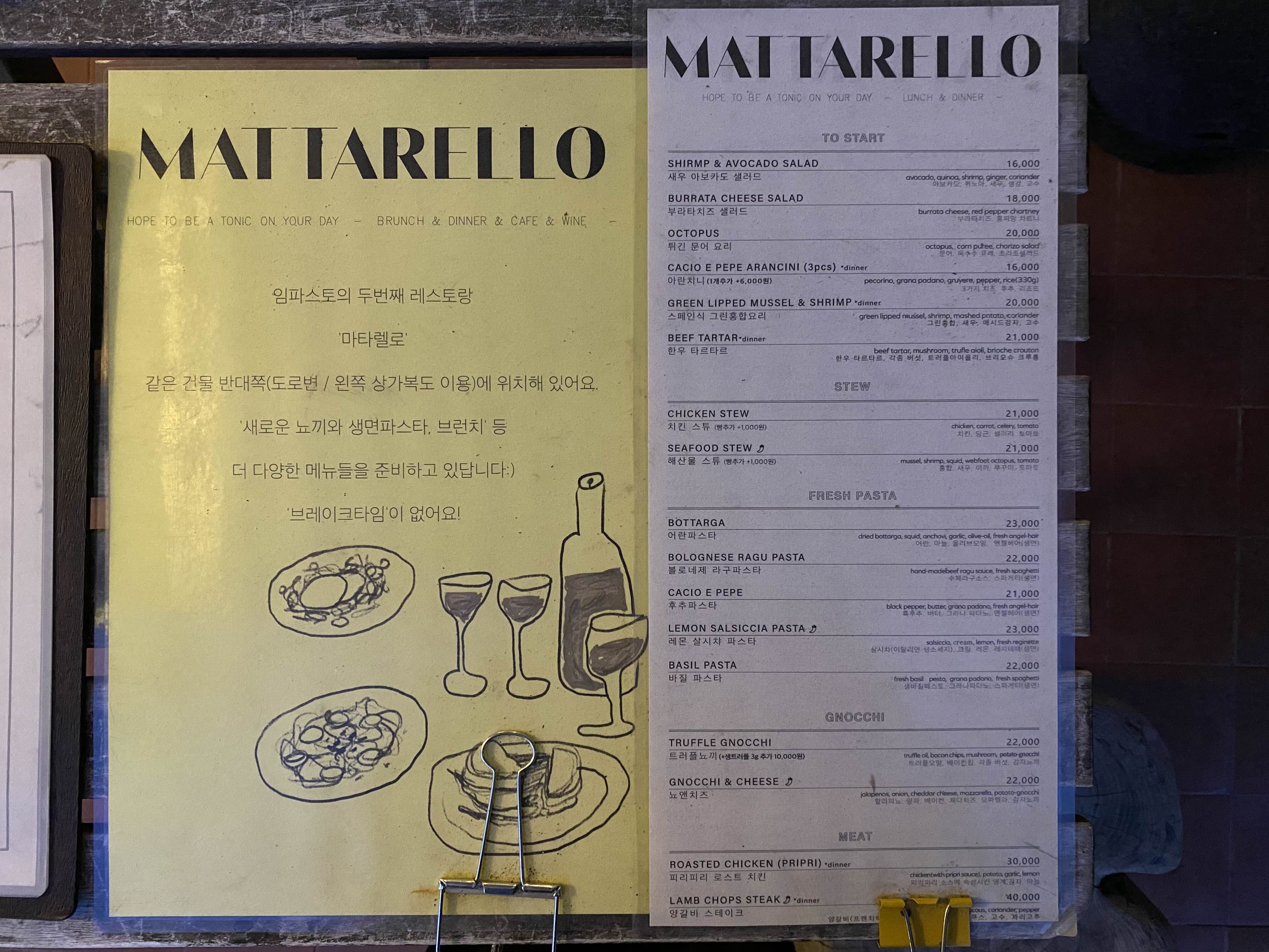 ‘마타렐로’ 메뉴판이었다.