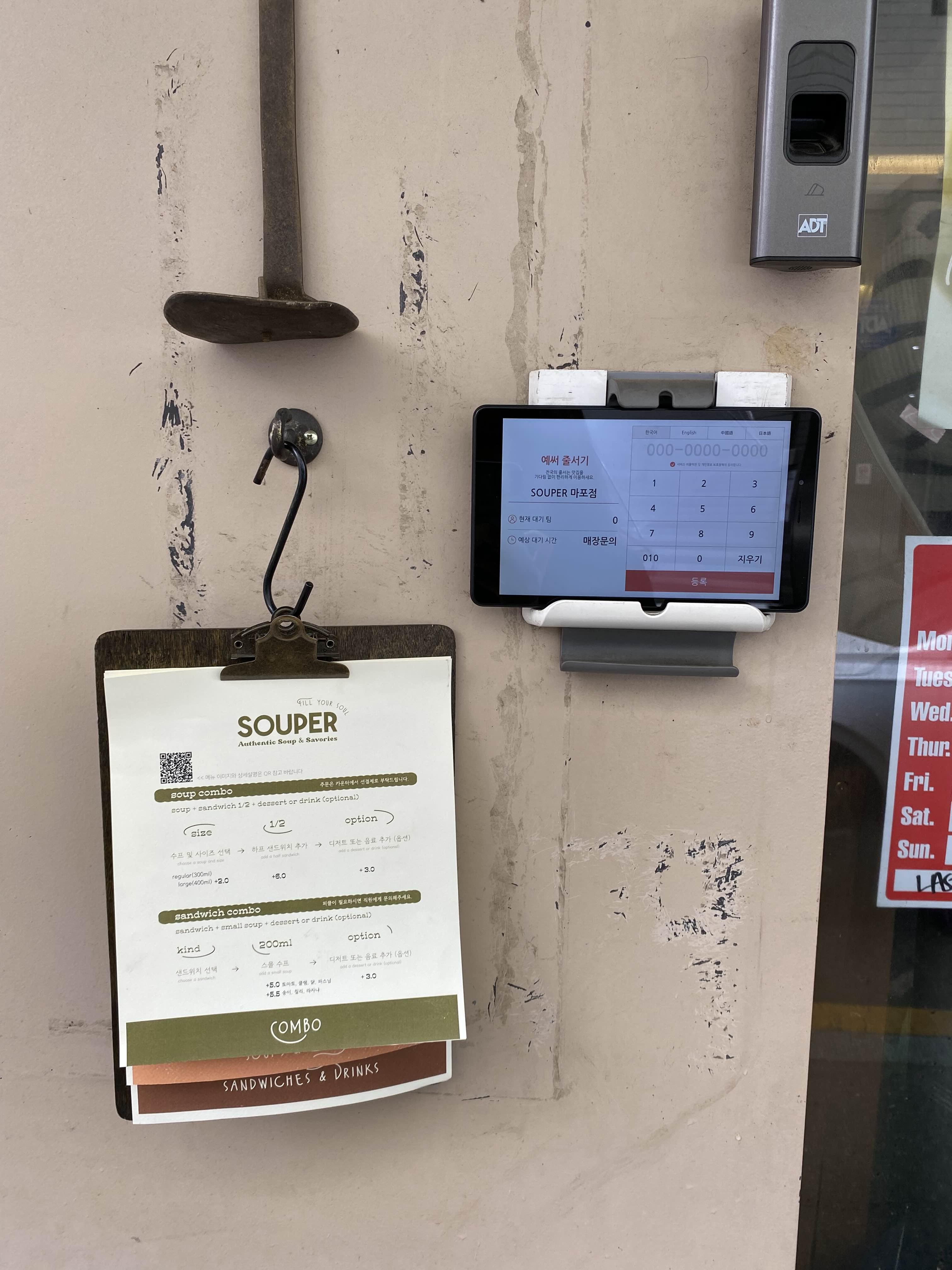 가게 앞쪽에 놓인 태블릿에