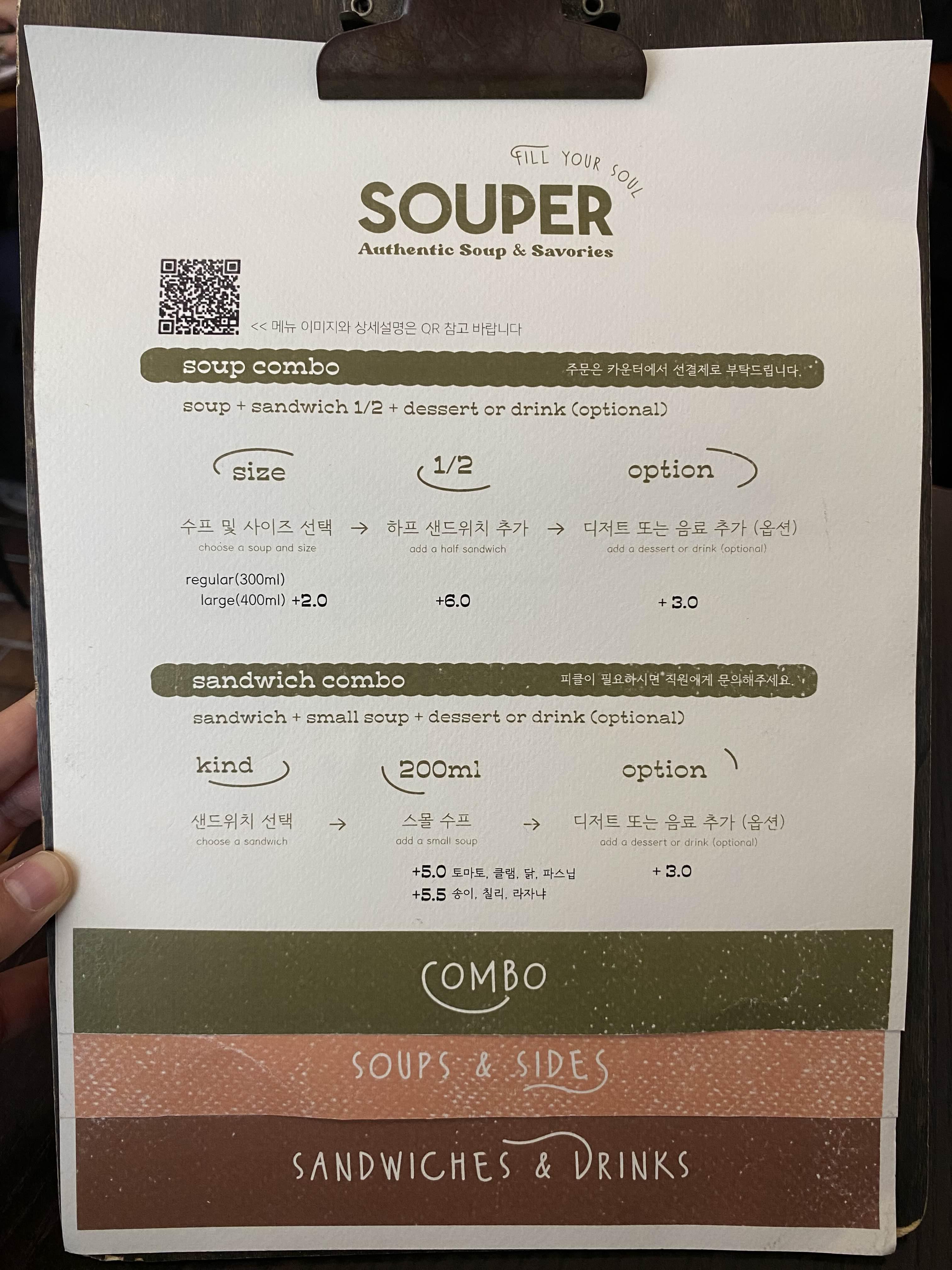 SOUPER의 메뉴.