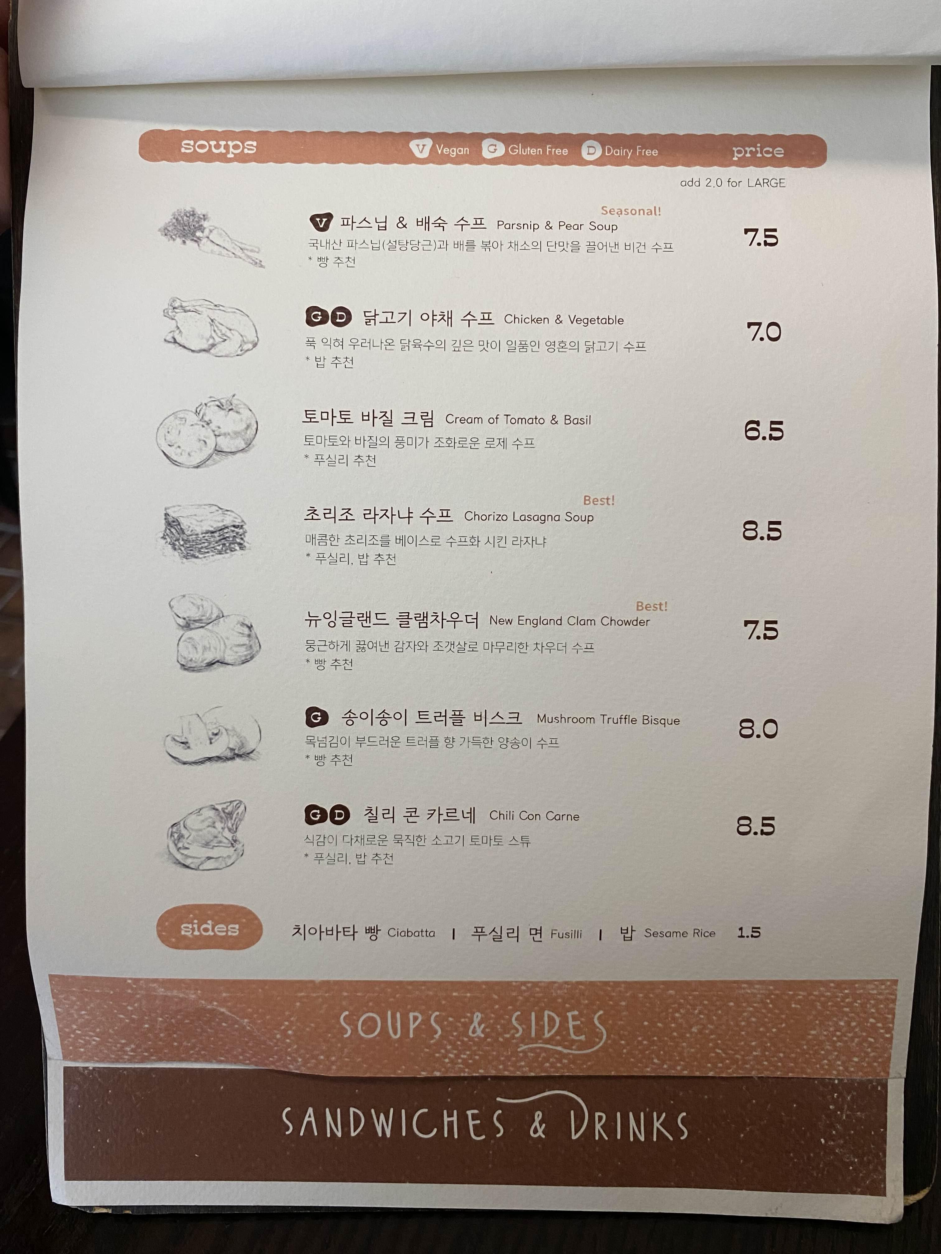 여긴 수프전문점이지만 샌드위치 맛집이었다.