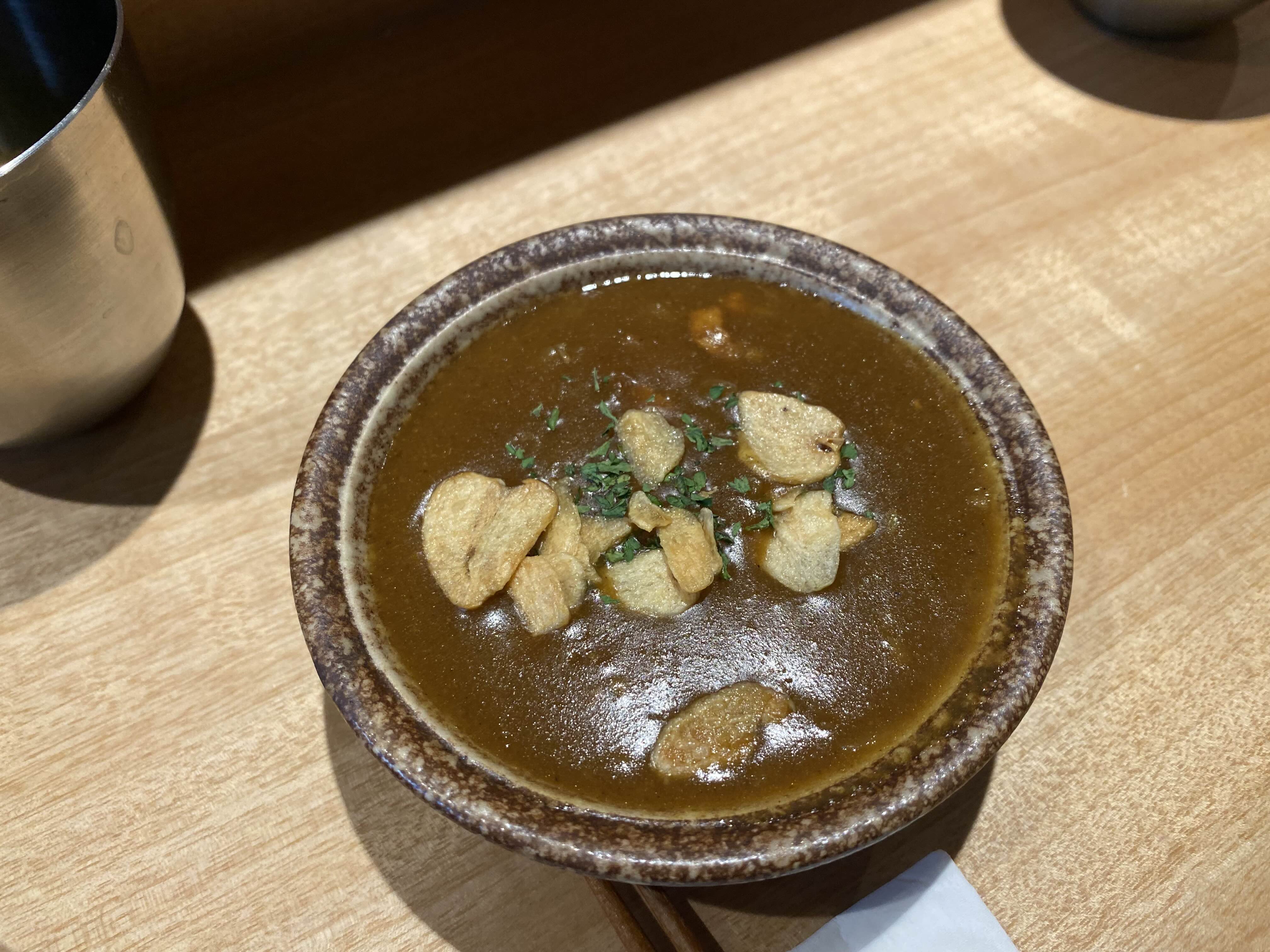 갈릭후레이크 토핑이 올려진 커리는