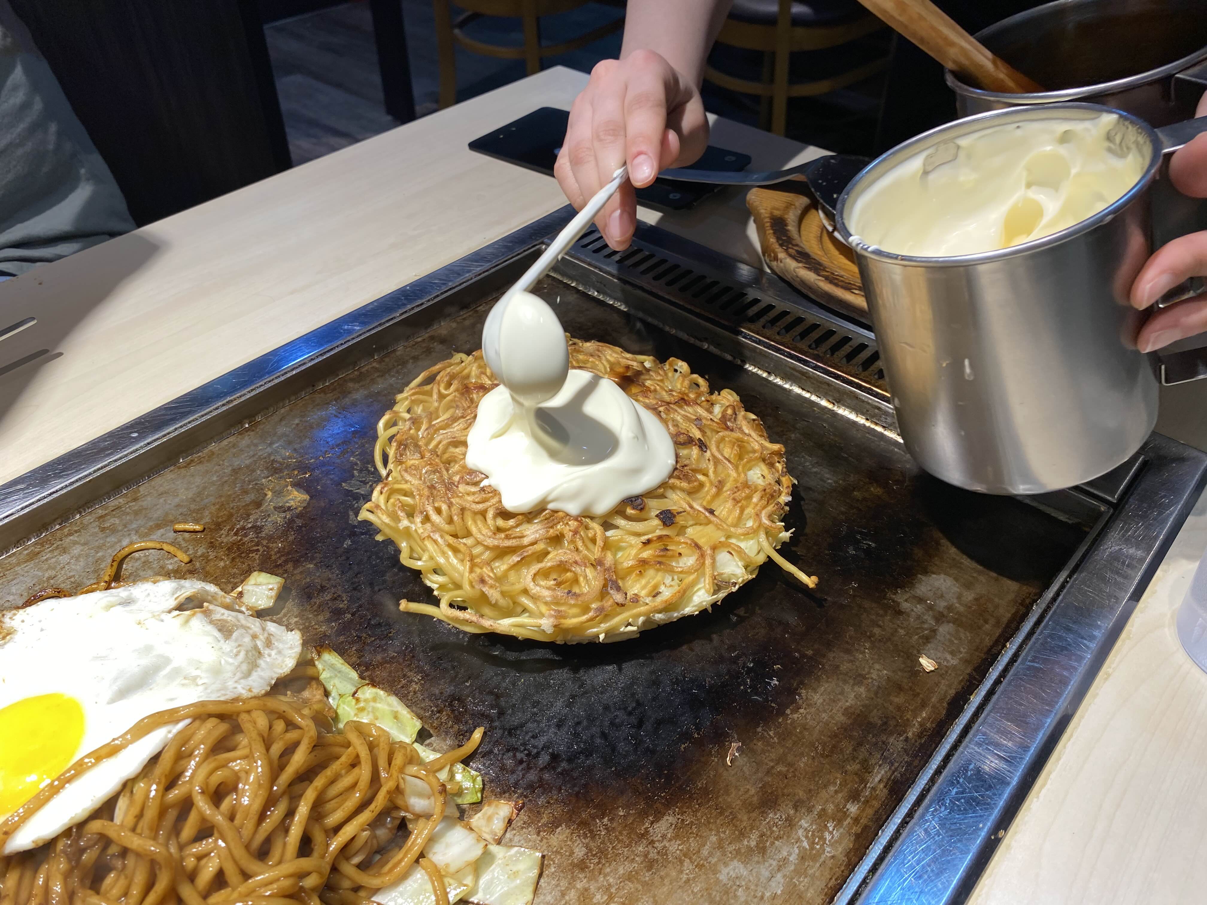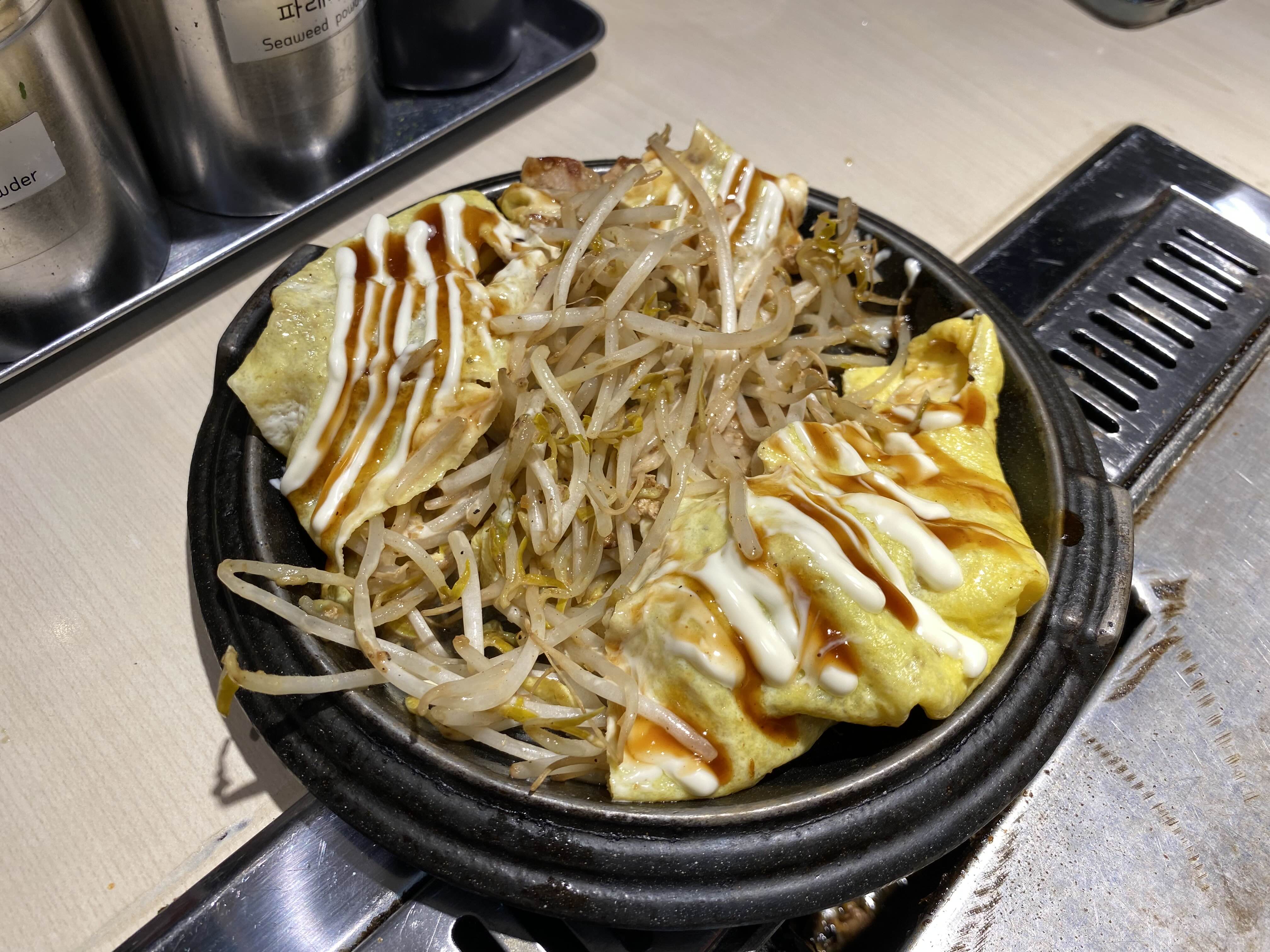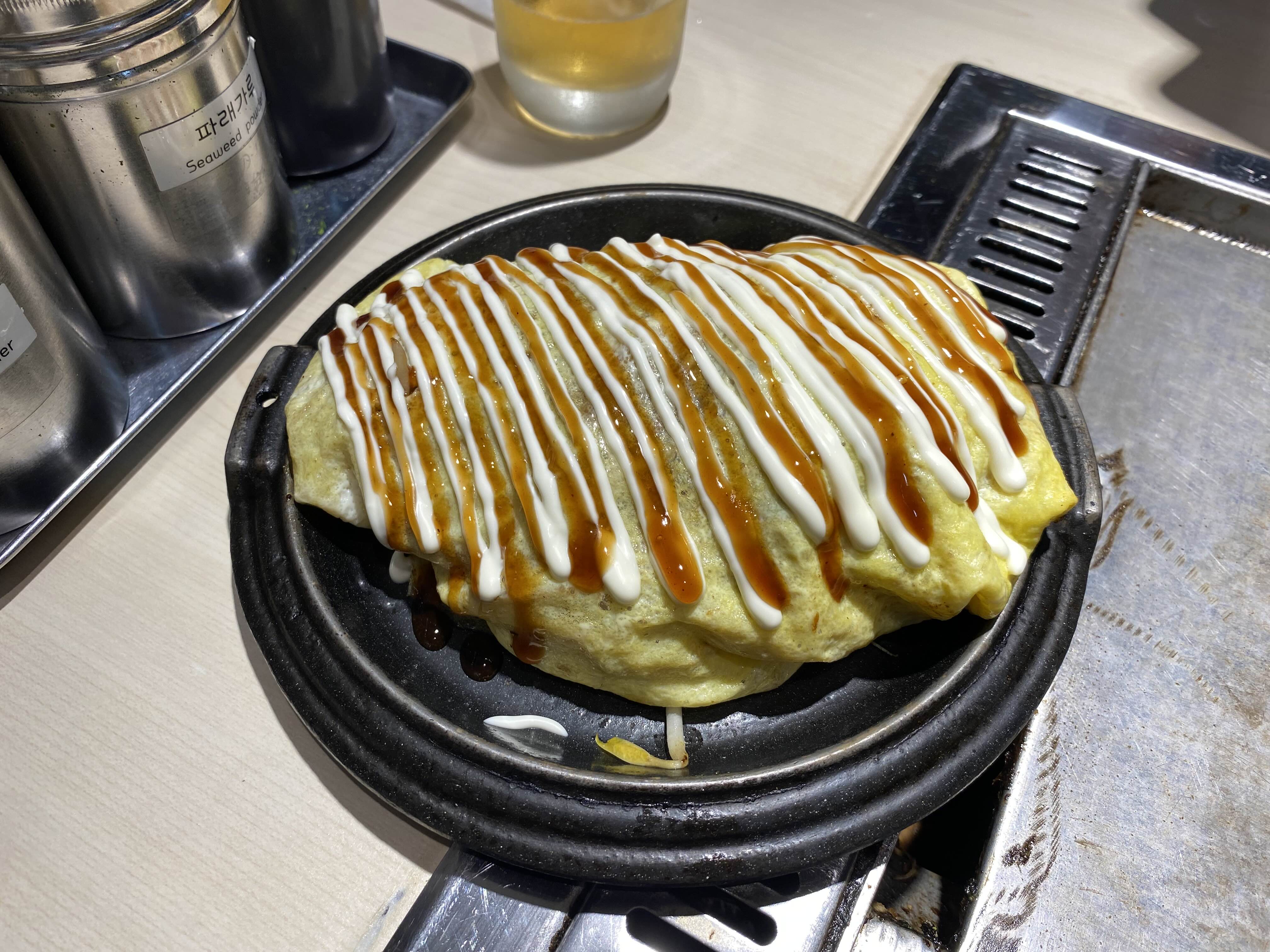 오코노미야끼는 특제 계란면이 올라간