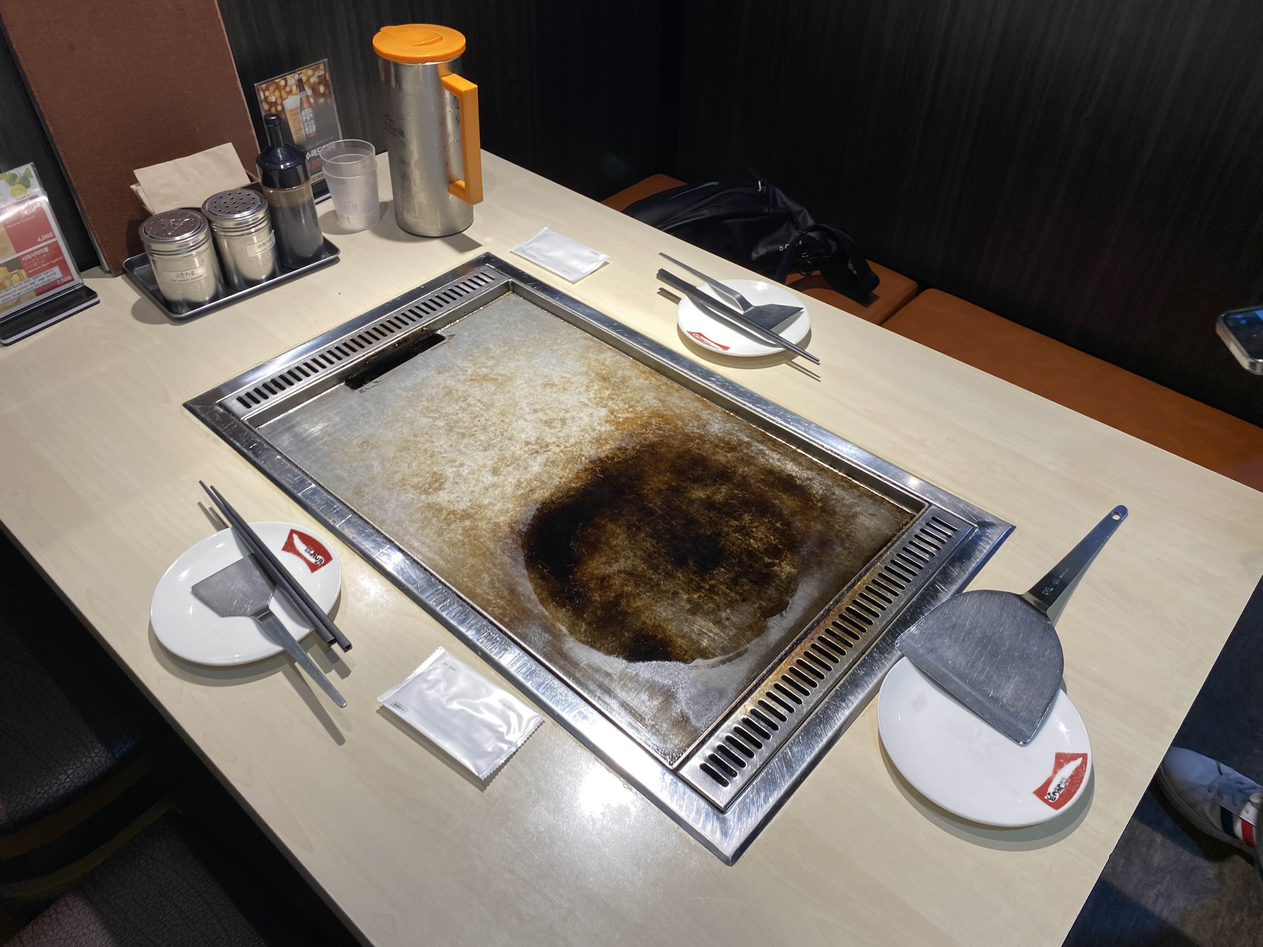 각 자리마다 철판이 놓여있어