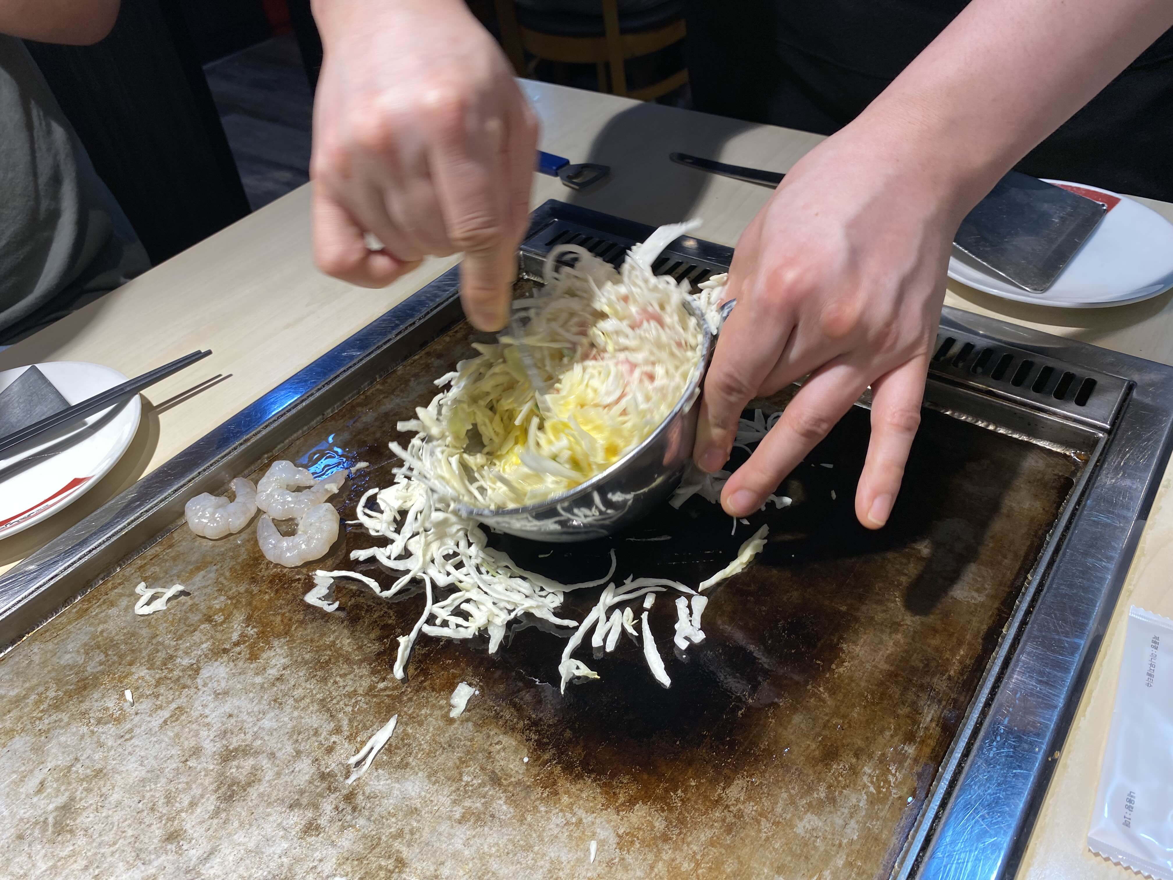 오코노미야끼는 자리에서 직접 요리해 준다.