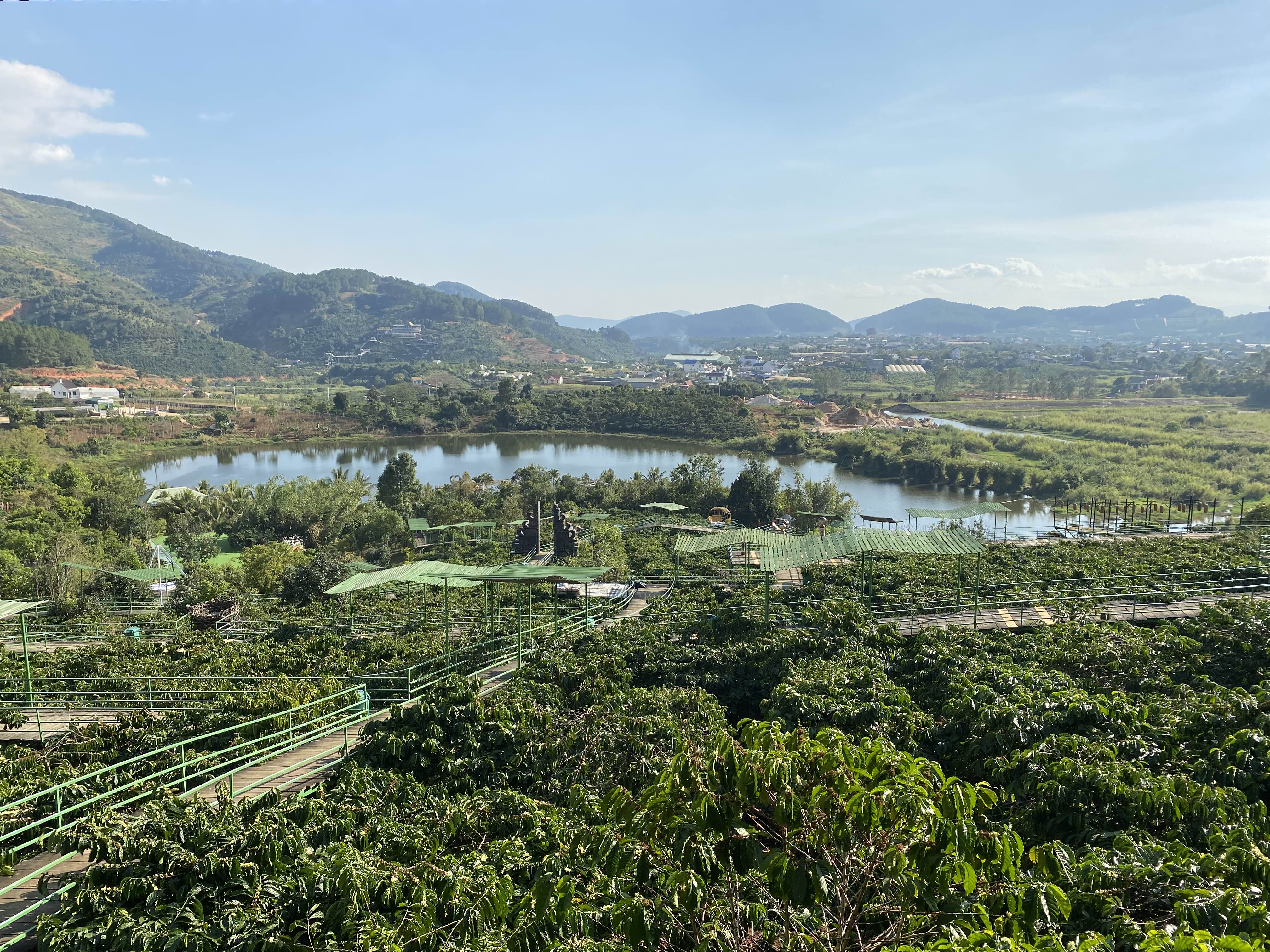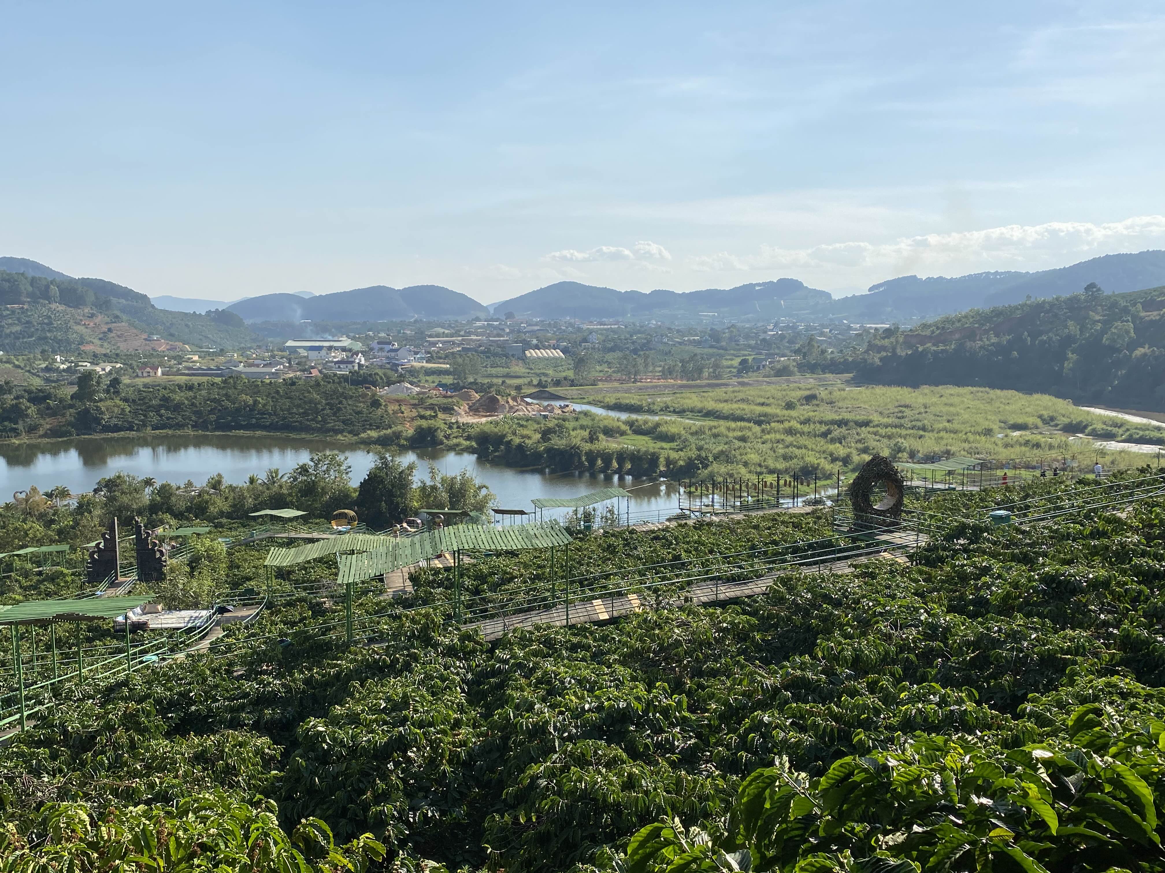 달랏의 경치와 드넓은 커피농장의 경치를