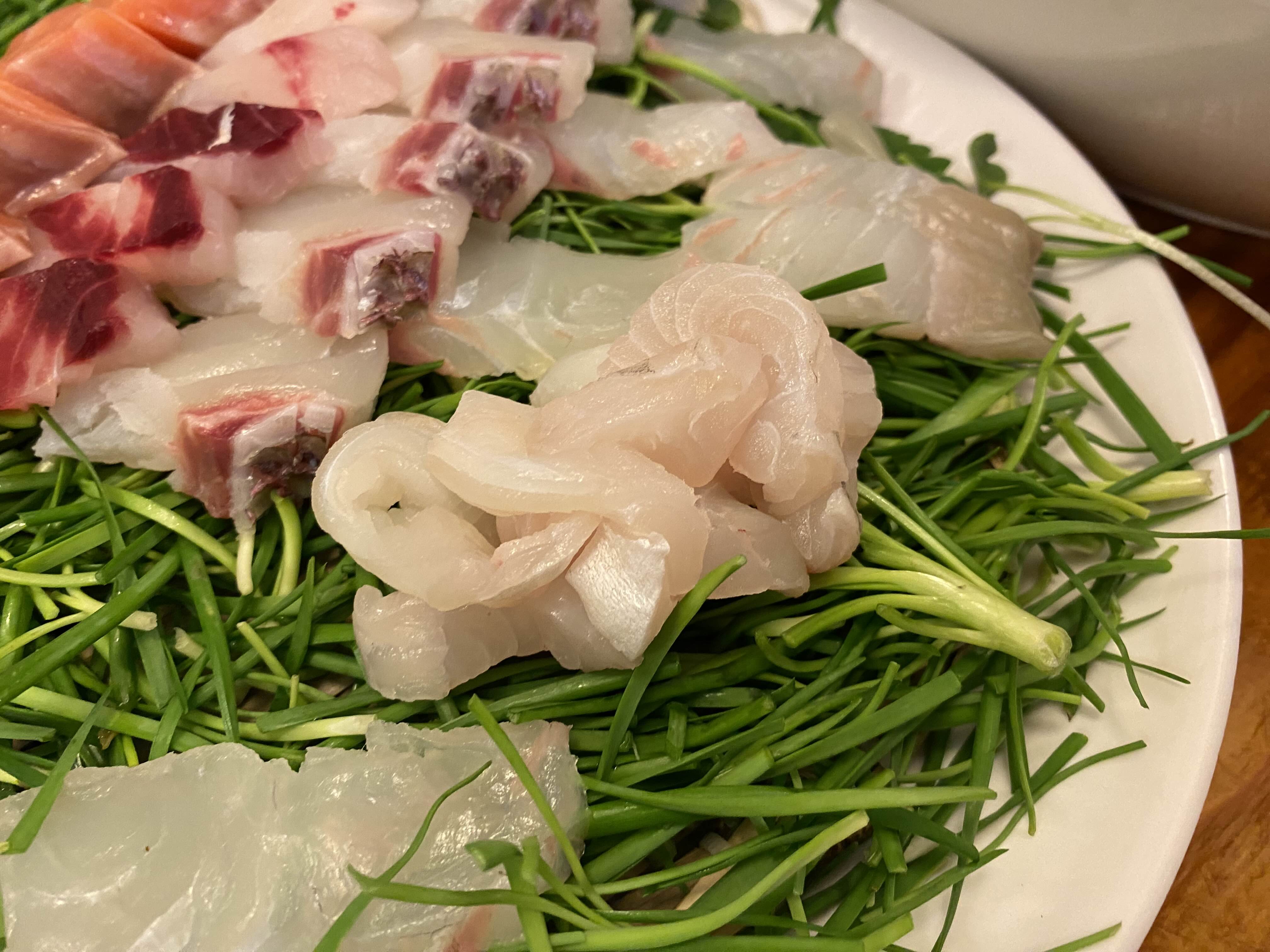 식감이 탱글하고 달달했던 가자미회.