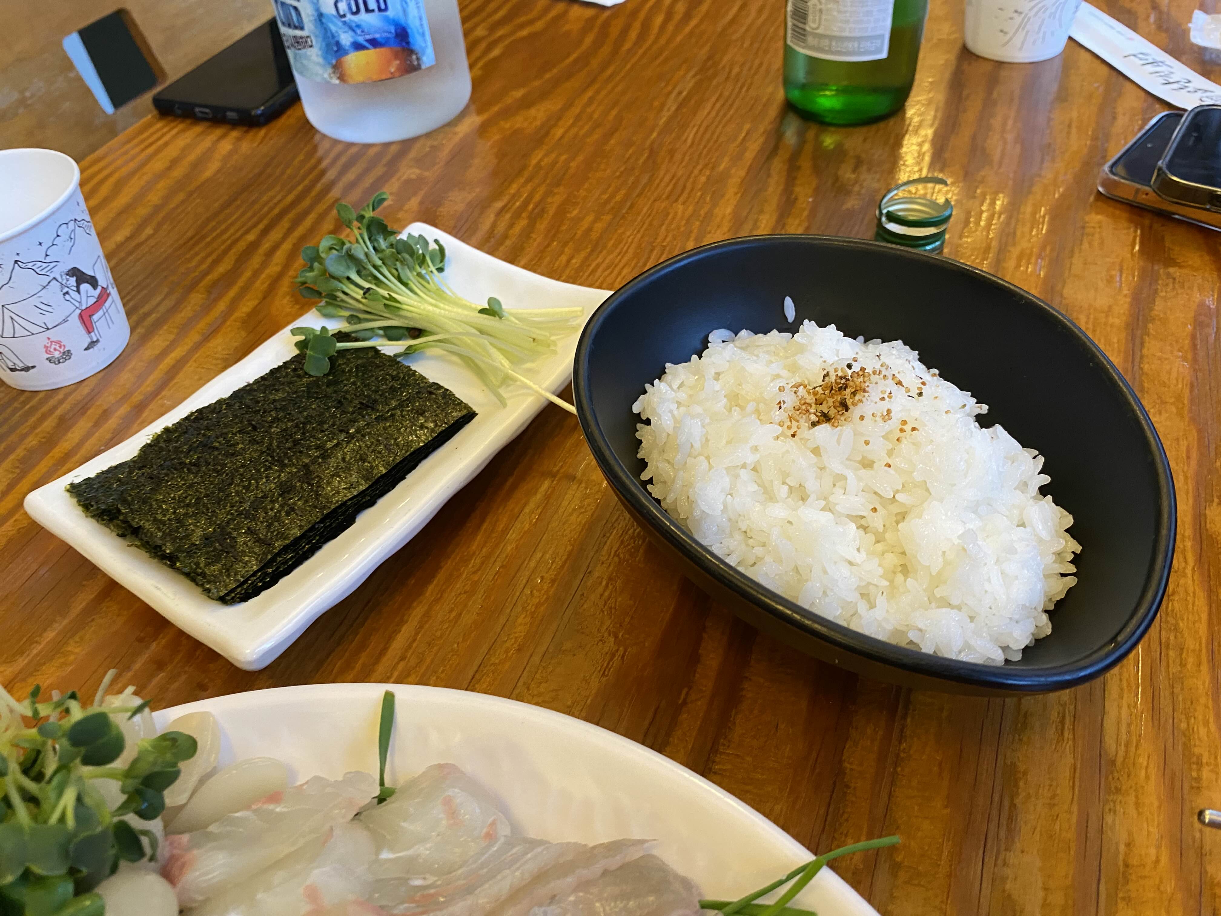 우린 회를 밥이랑 먹는 걸 좋아해서 주문한