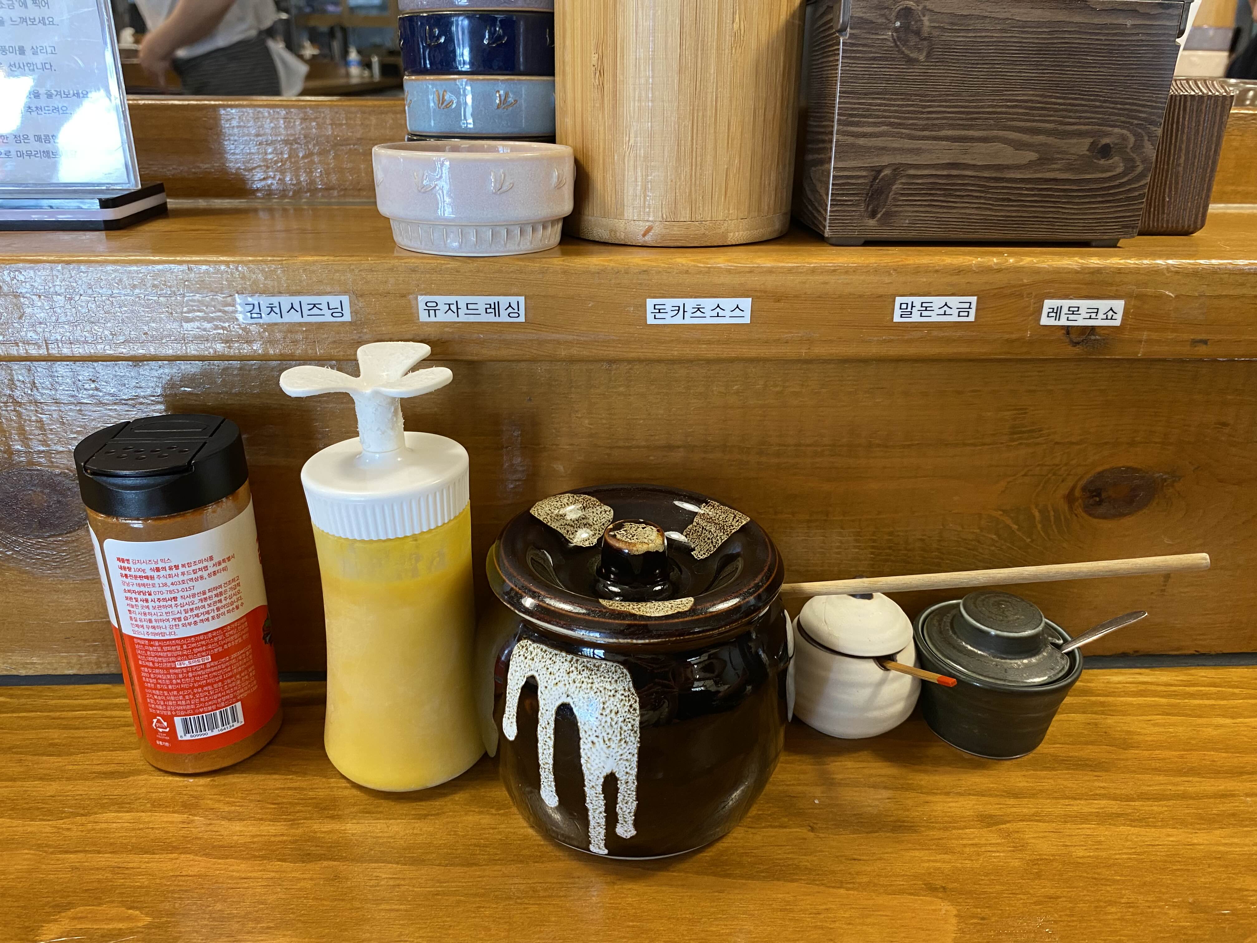 돈카츠 소스, 말돈소금, 레몬코쇼, 김치시즈닝이