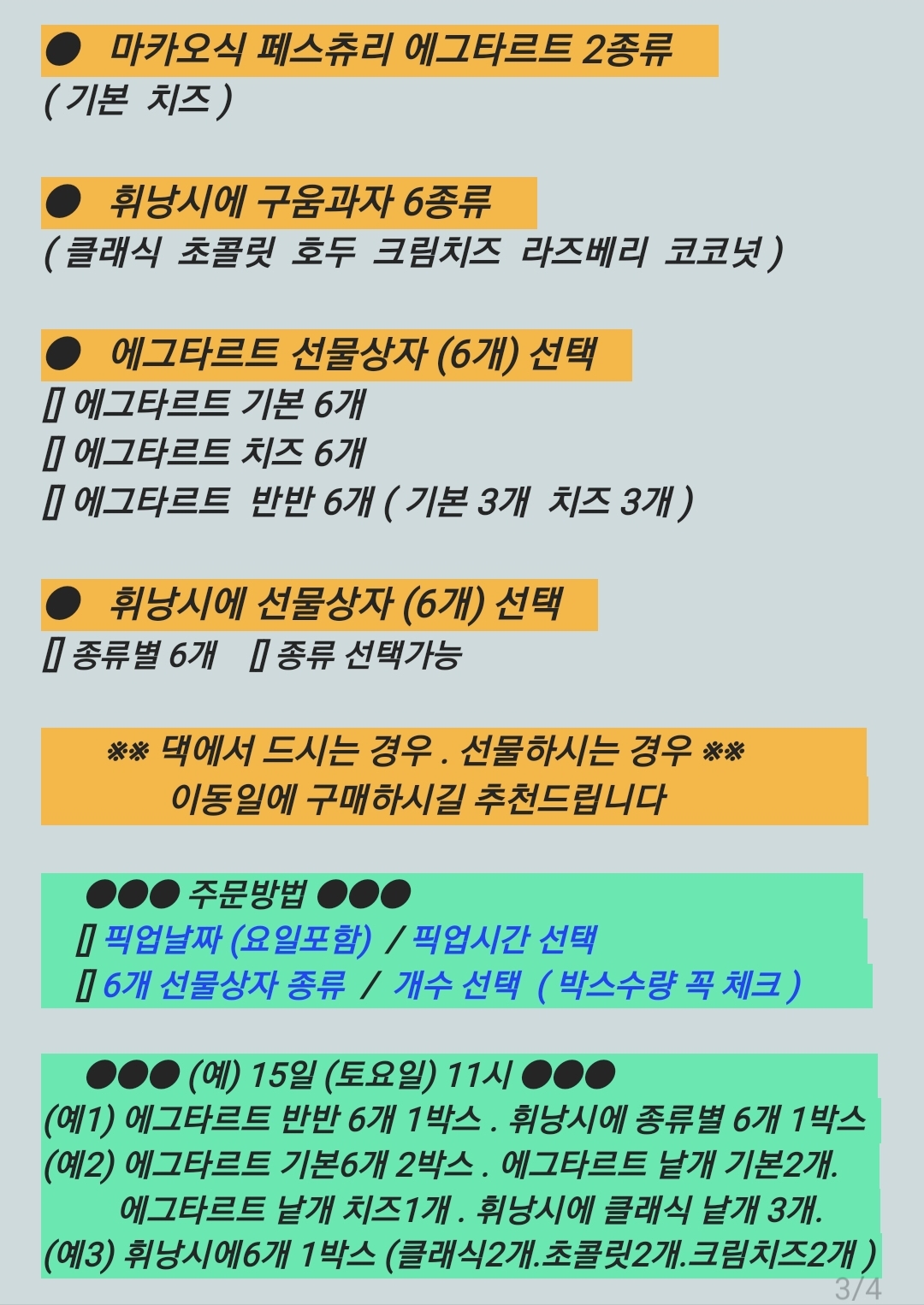 ex) 에그타르트 반반 6개 1박스