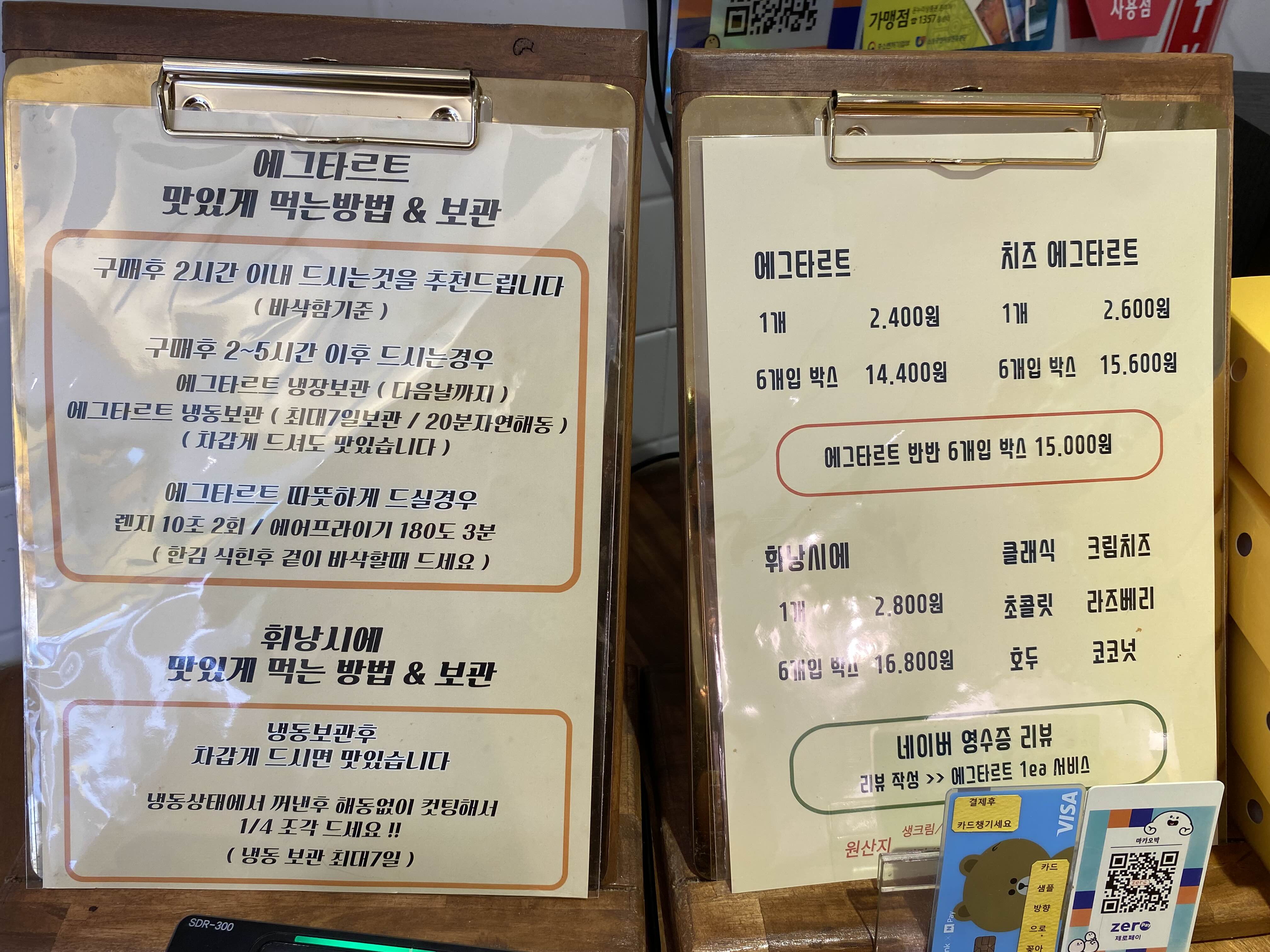에그타르트와 휘낭시에 가격과