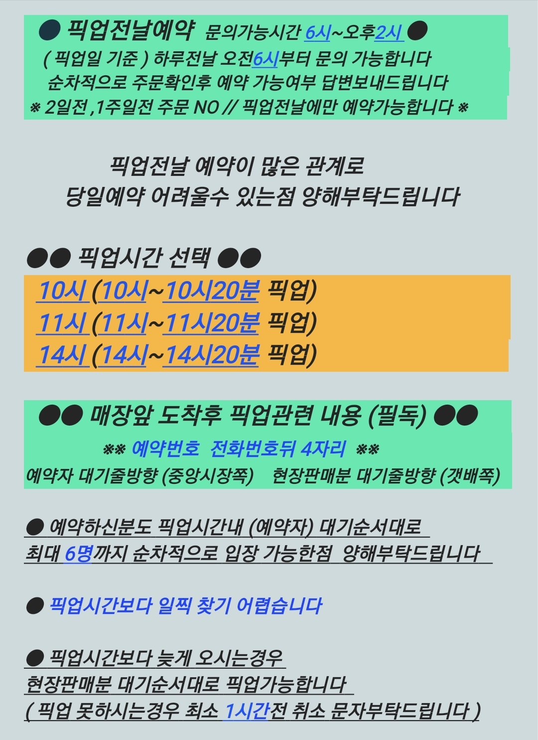 ✔️ 현장구매는 10시, 2시 픽업시간 이후인