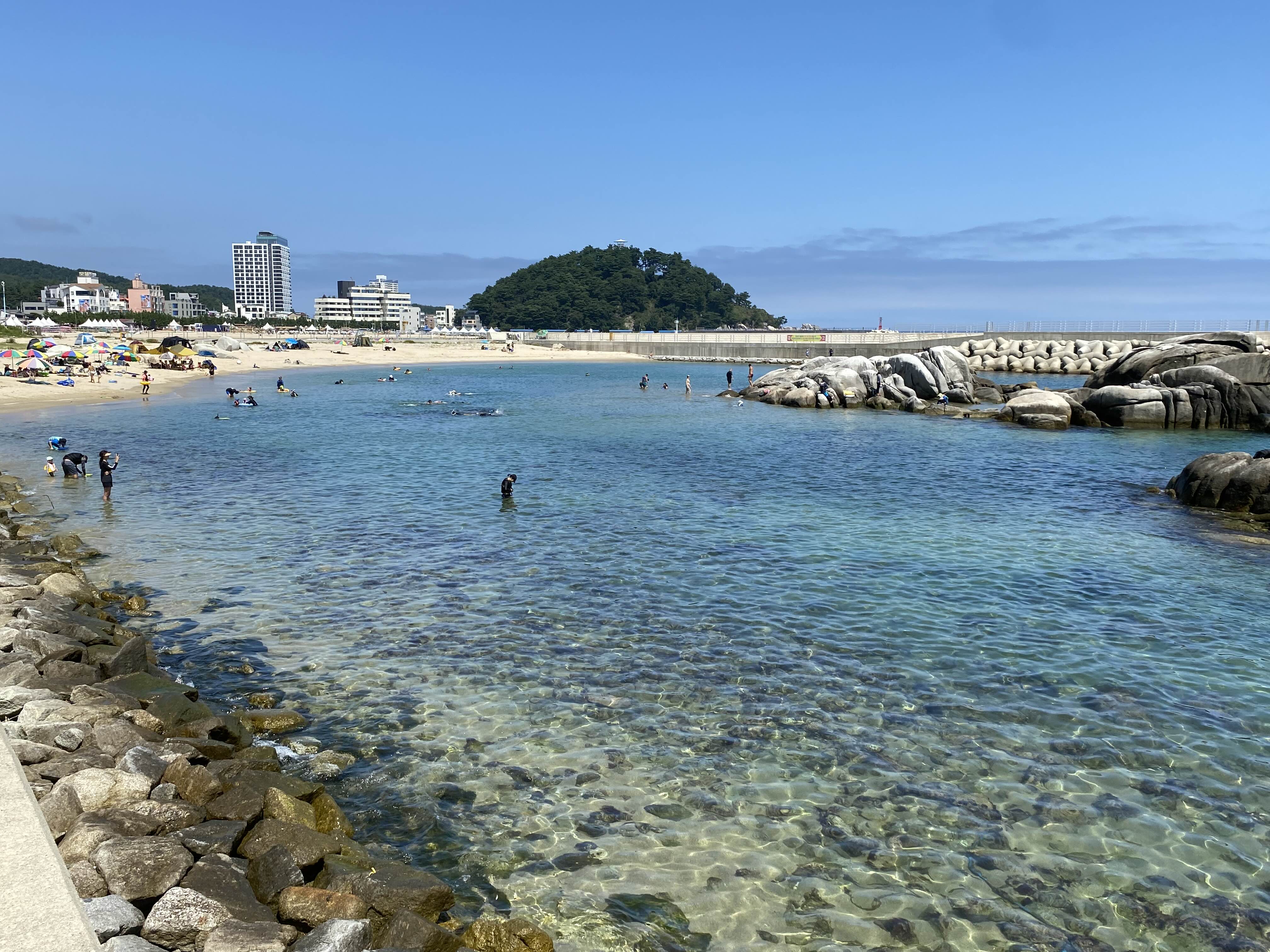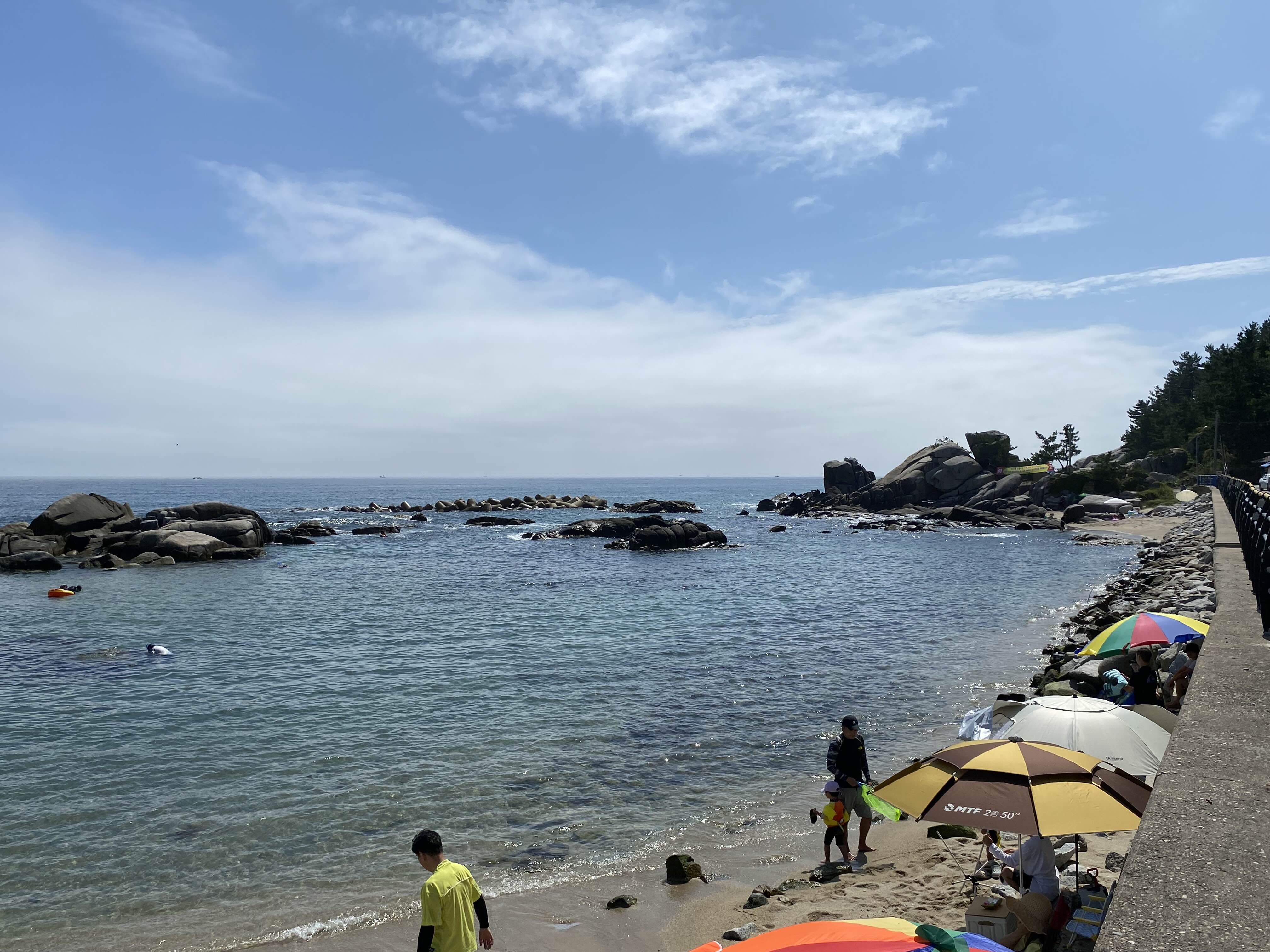 방파제로 막혀있어 파도를 막아주어 잔잔한 편으로