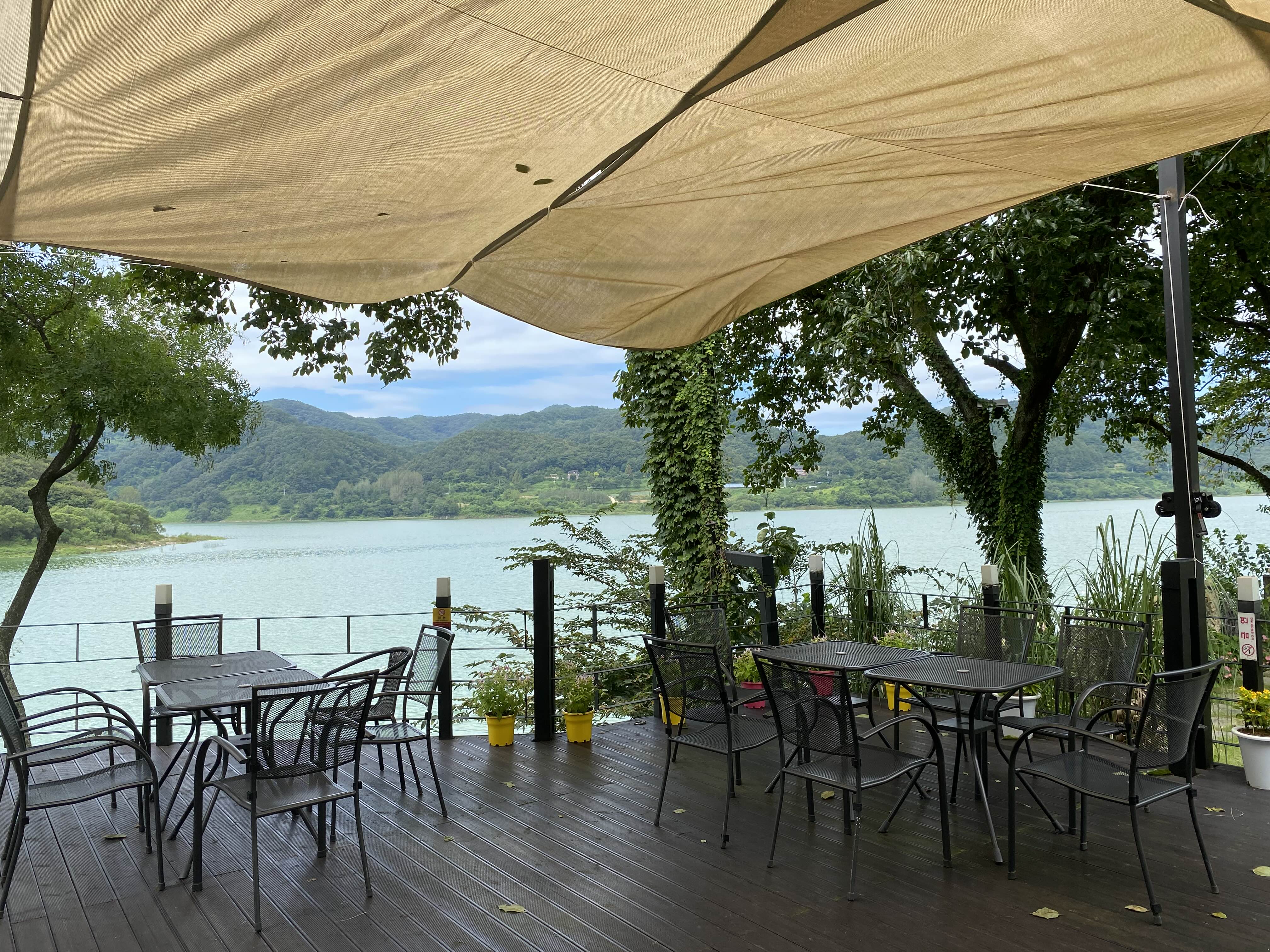 호수 바로 앞에 위치해 있던 기배기 카페