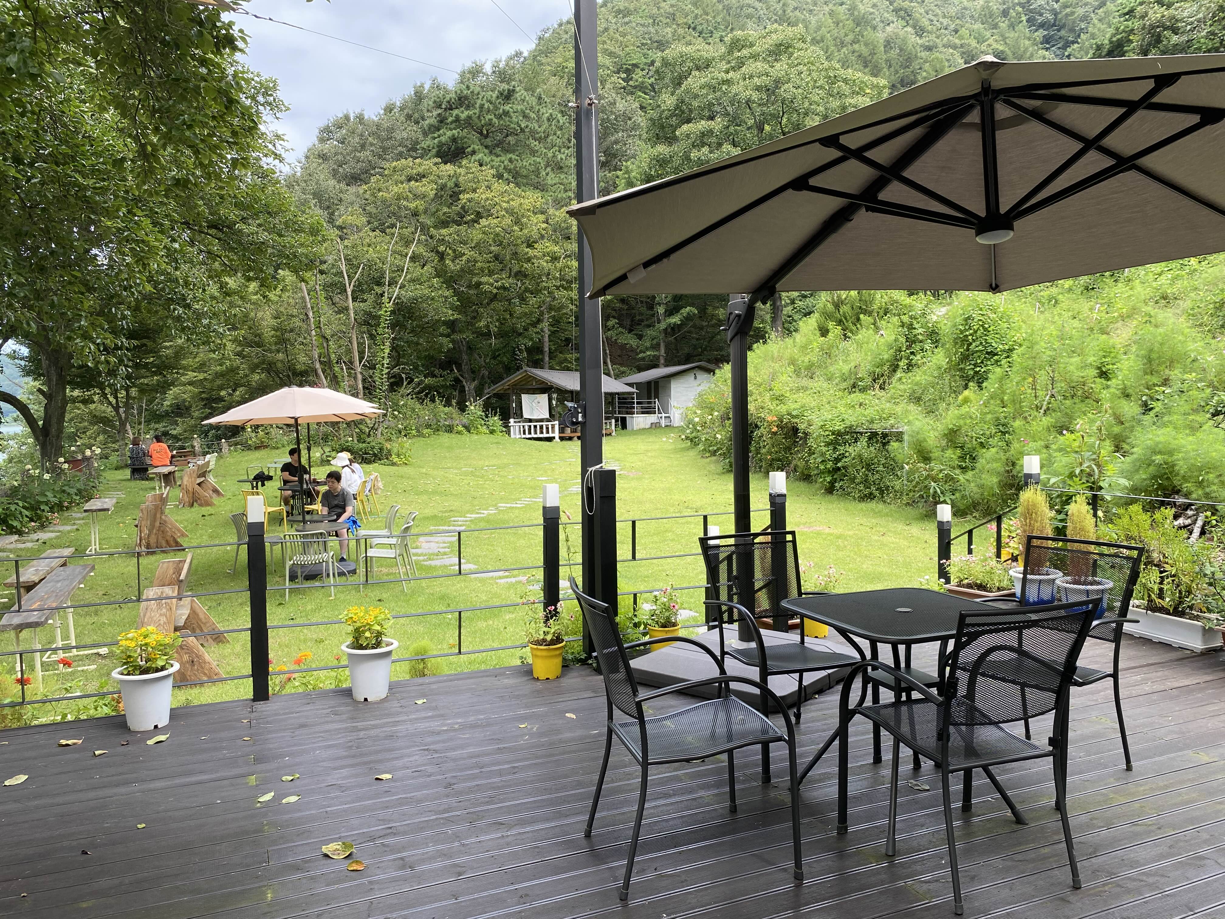 잔디밭 깔린 야외테이블도 있어