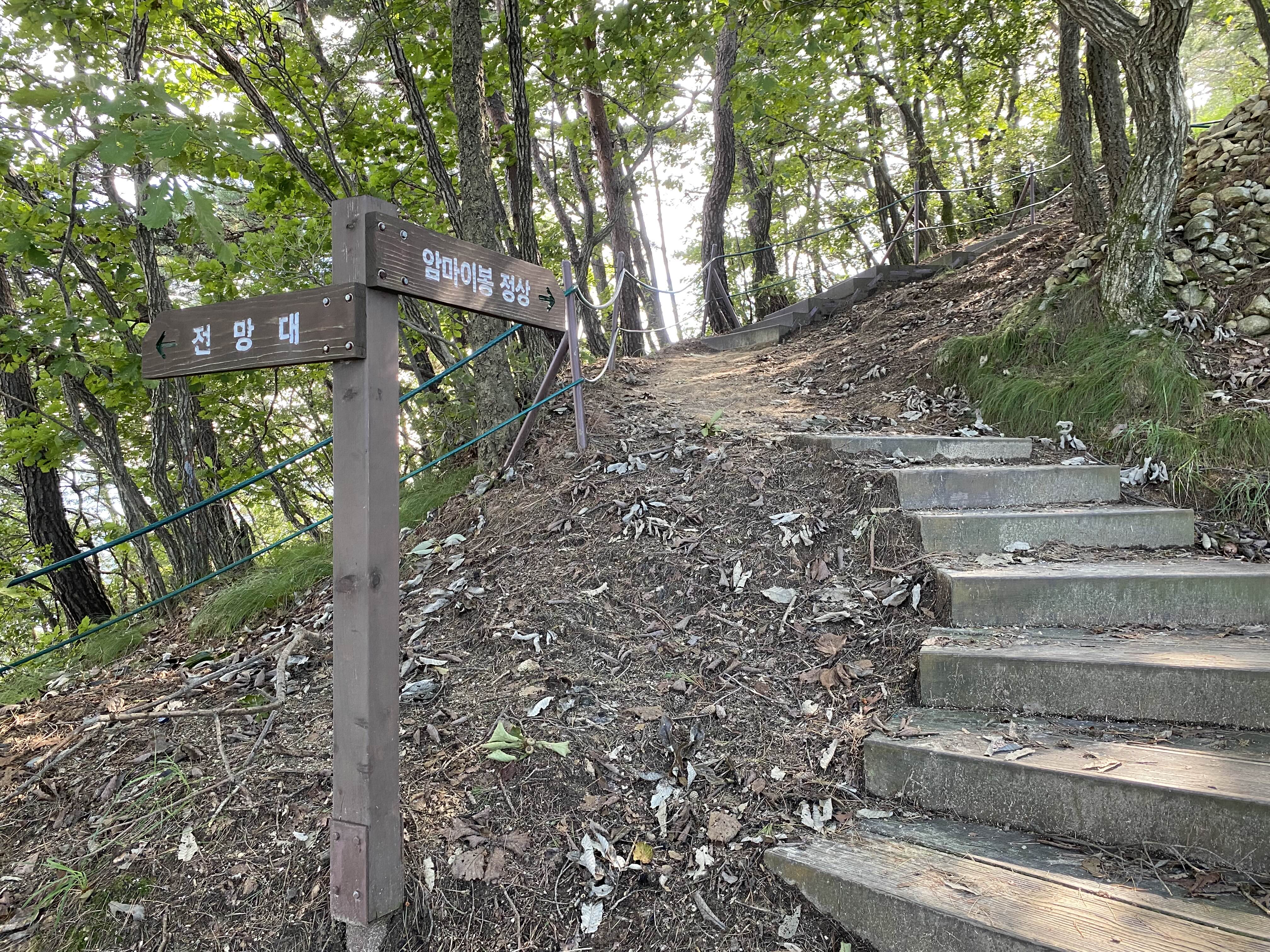 암마이봉 정산과 전망대 표지판이 나오면