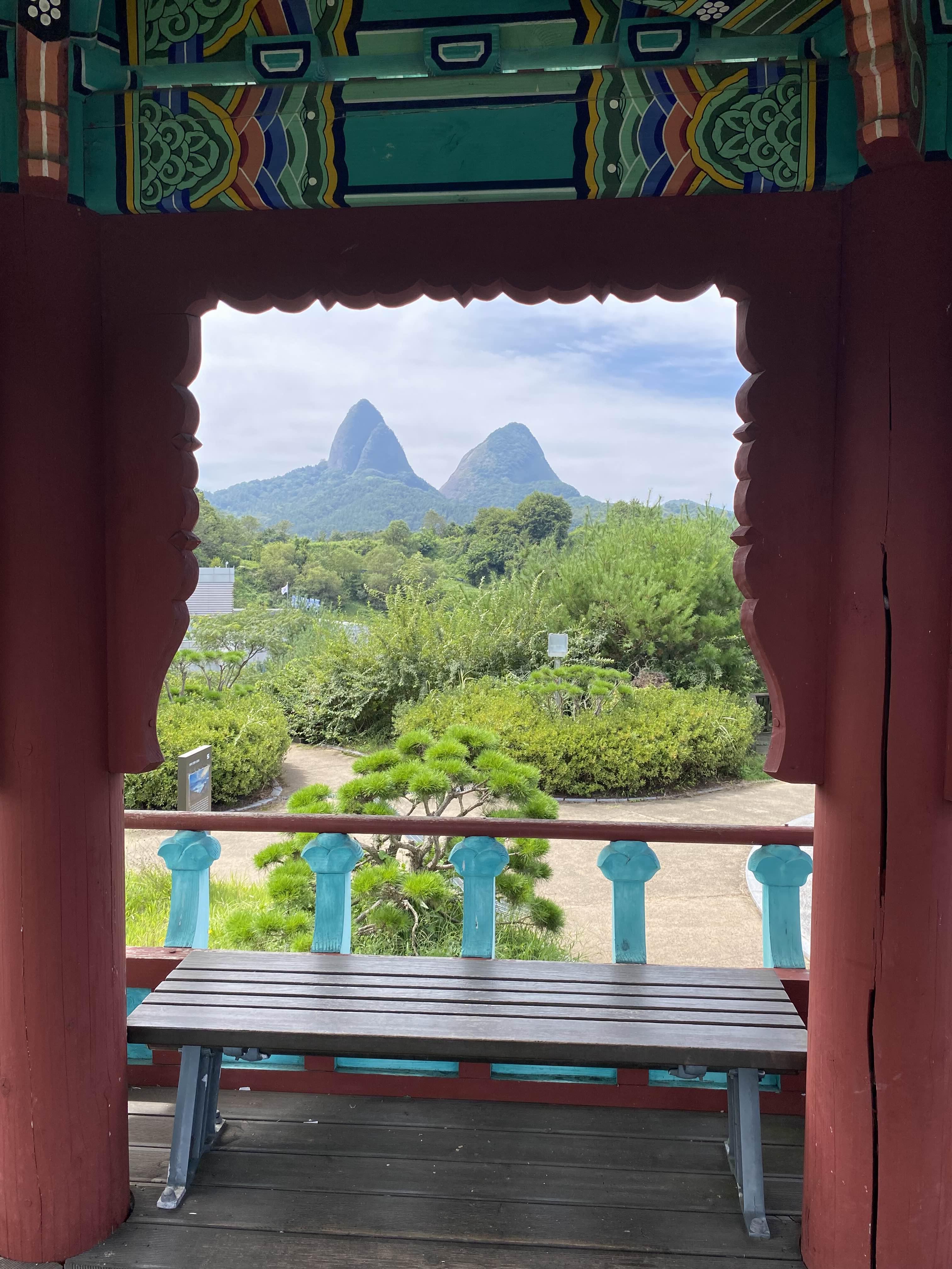 정자를 테두리 삼아 마이산이 예쁘게 들어온다.