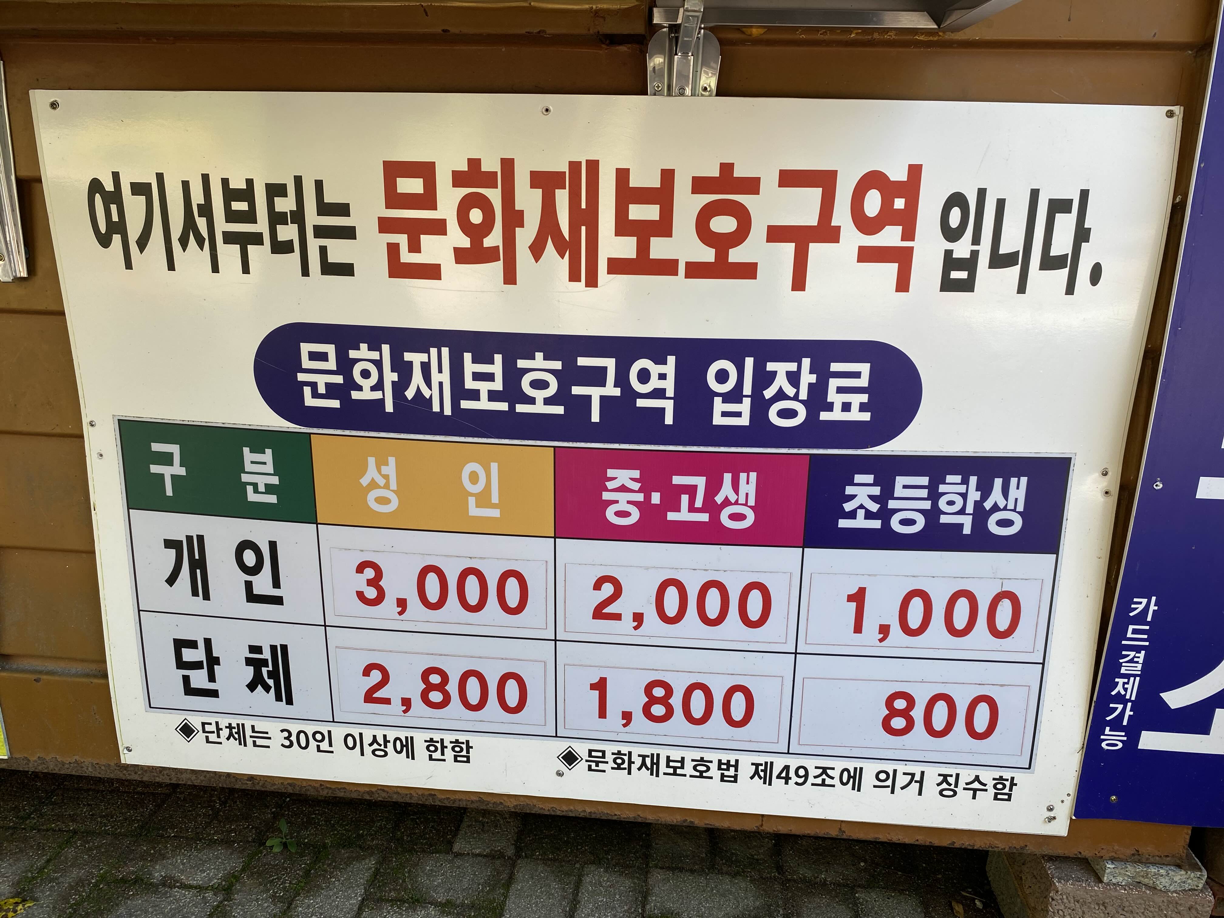 은수사를 지나오면서 입장료를 내야 한다.