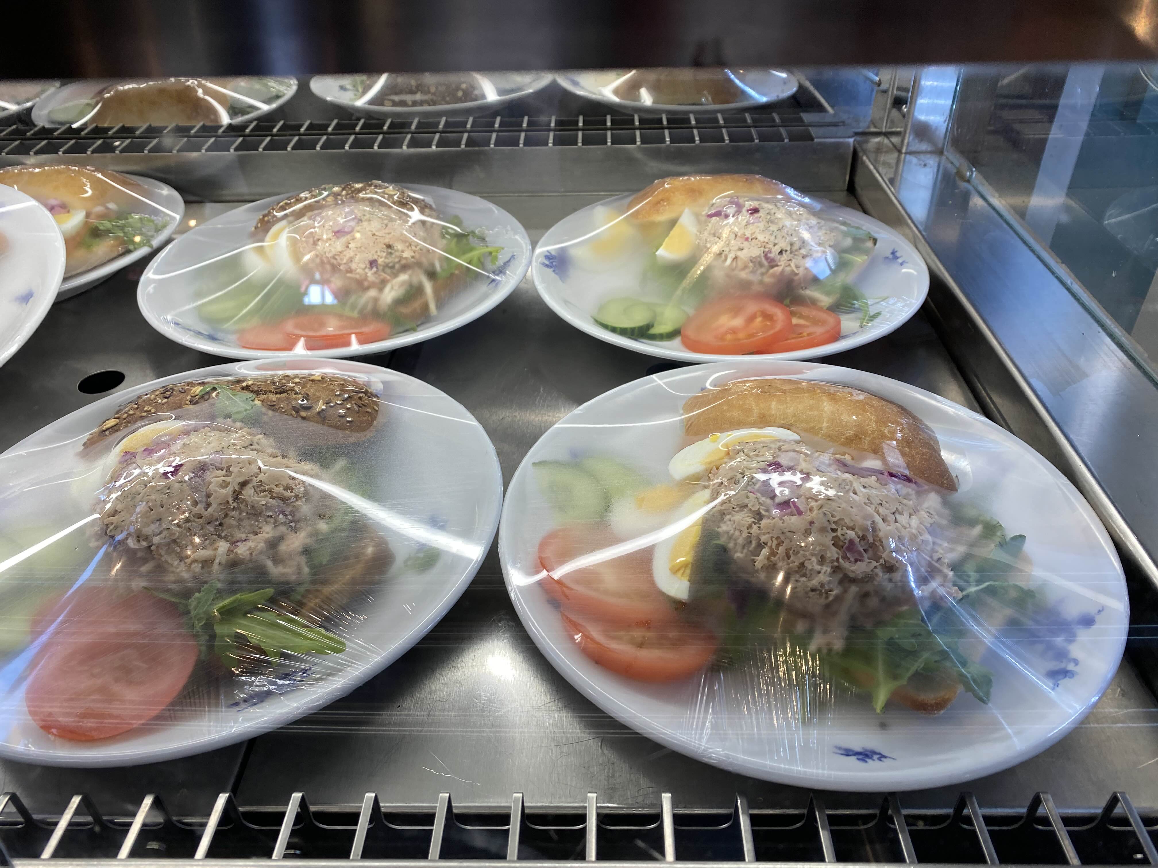 연어와 루꼴라, 삶은 계란이 들어있는 샌드위치.