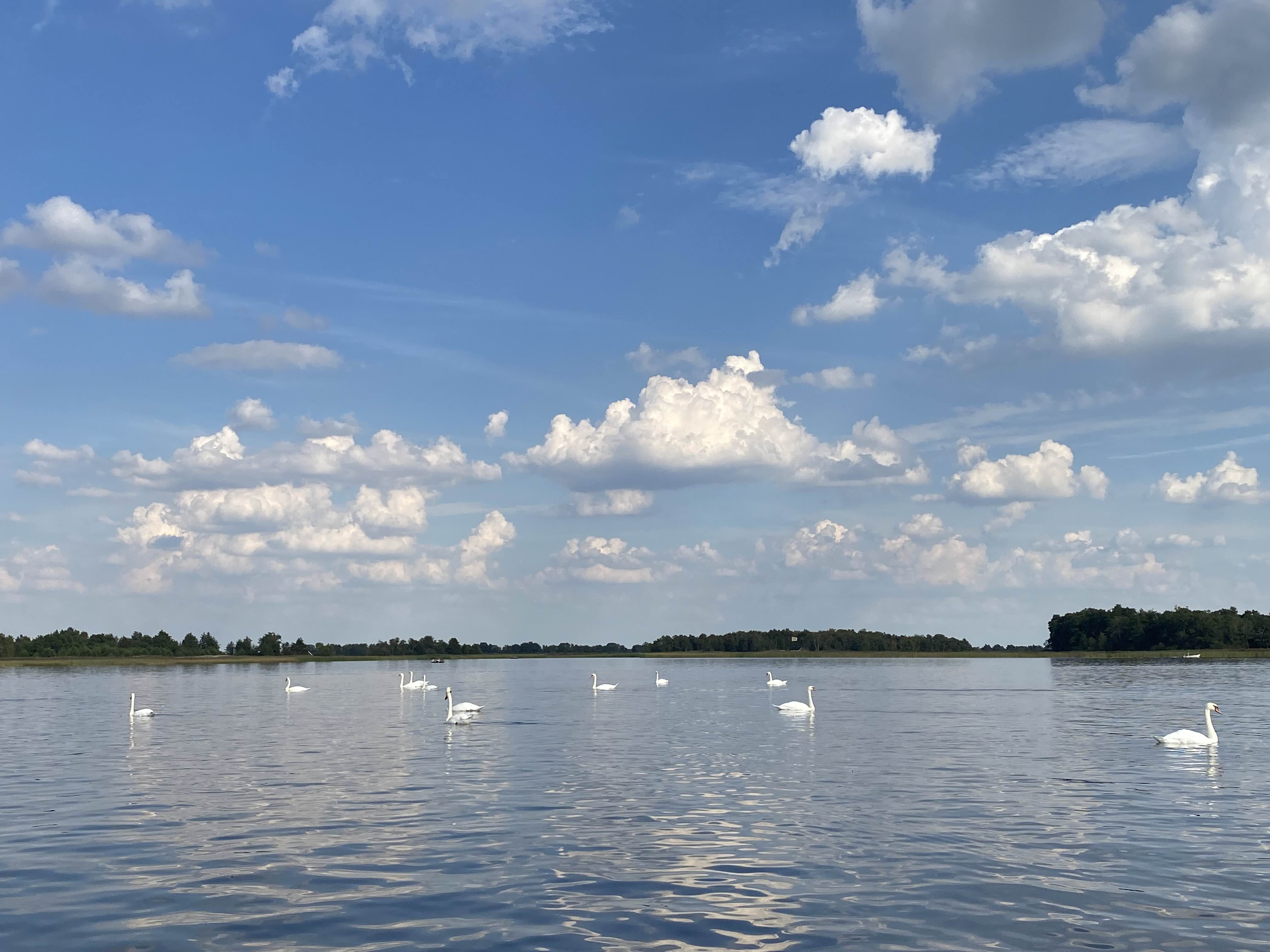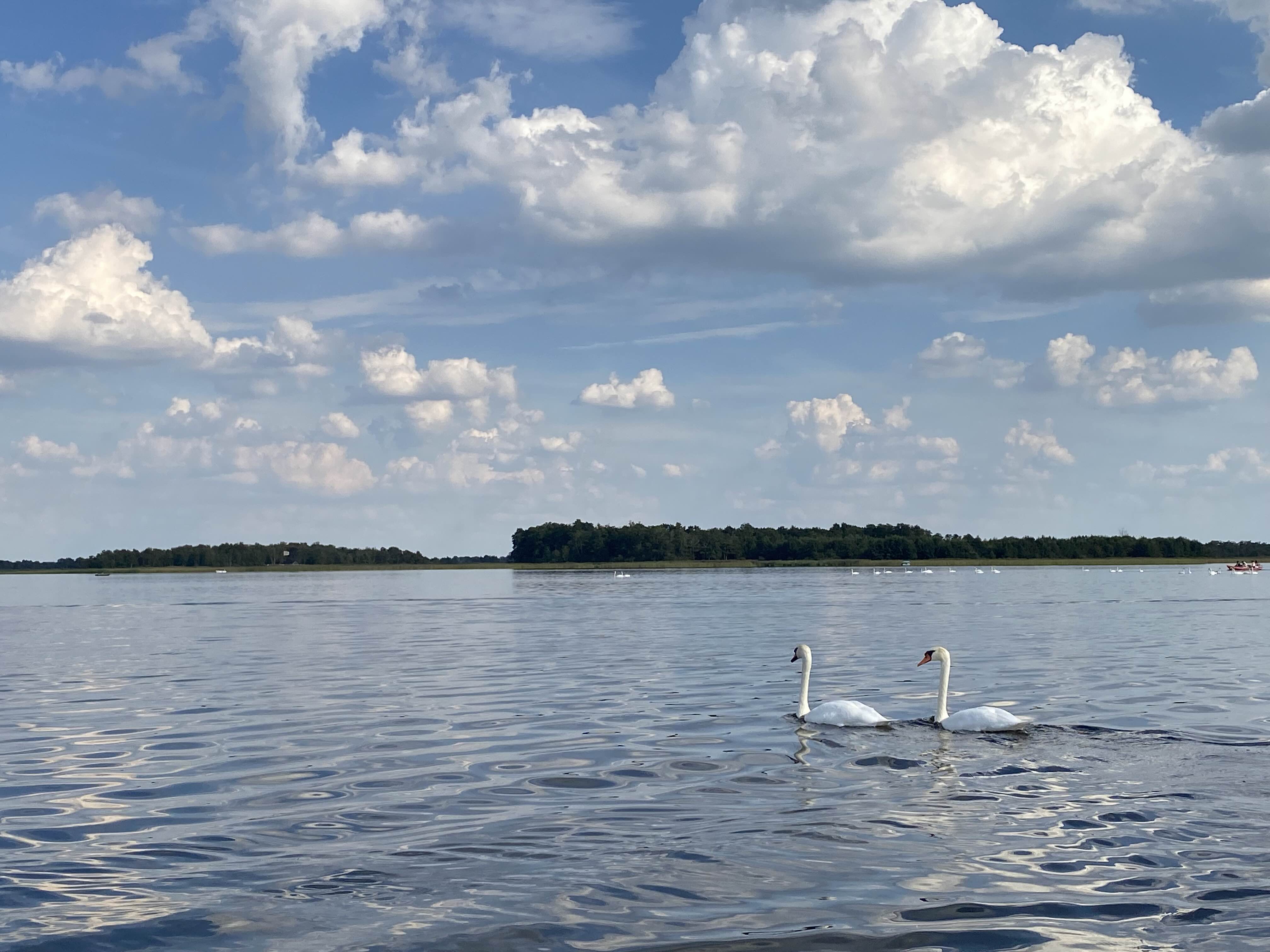 백조가 함께 노니는 호수에서