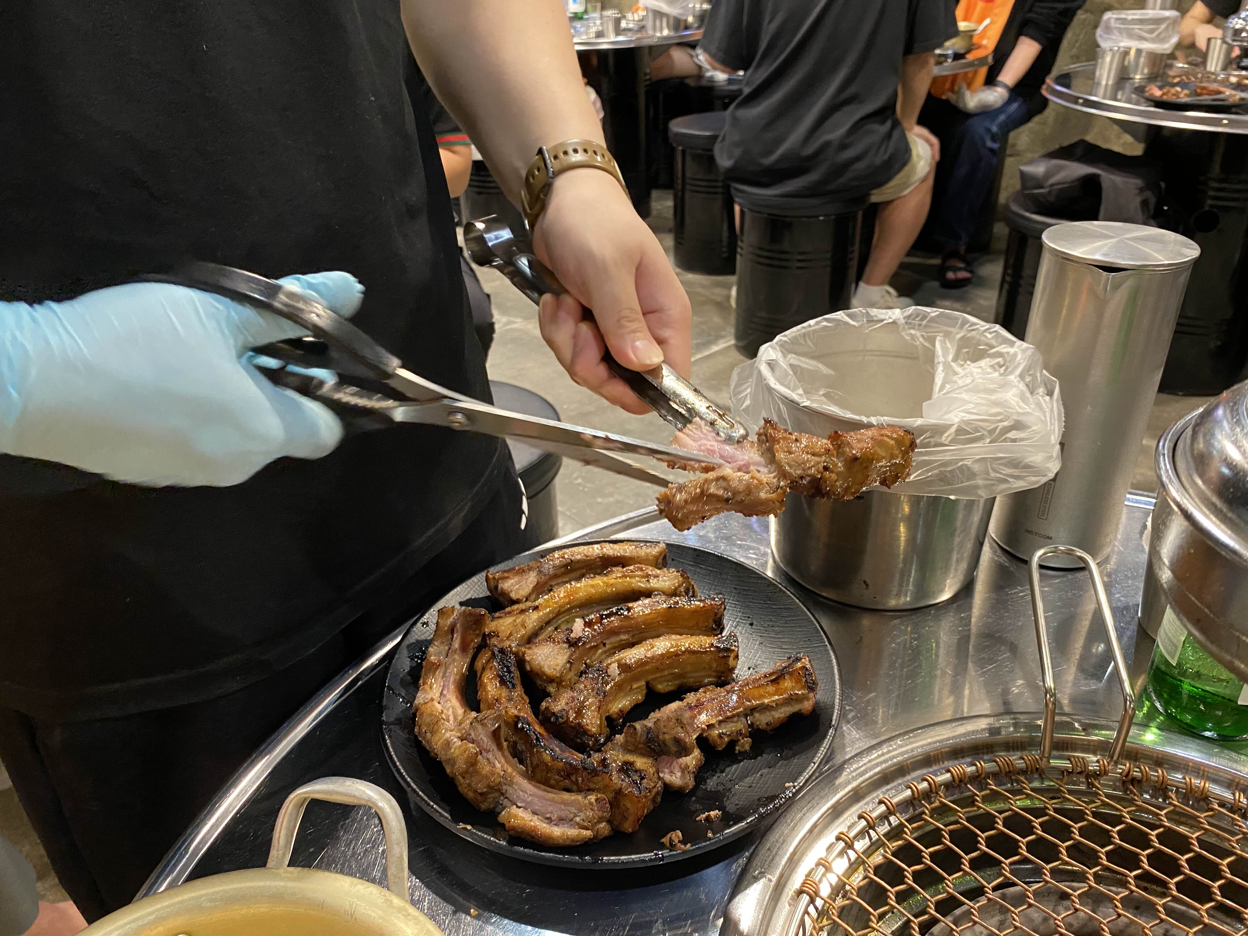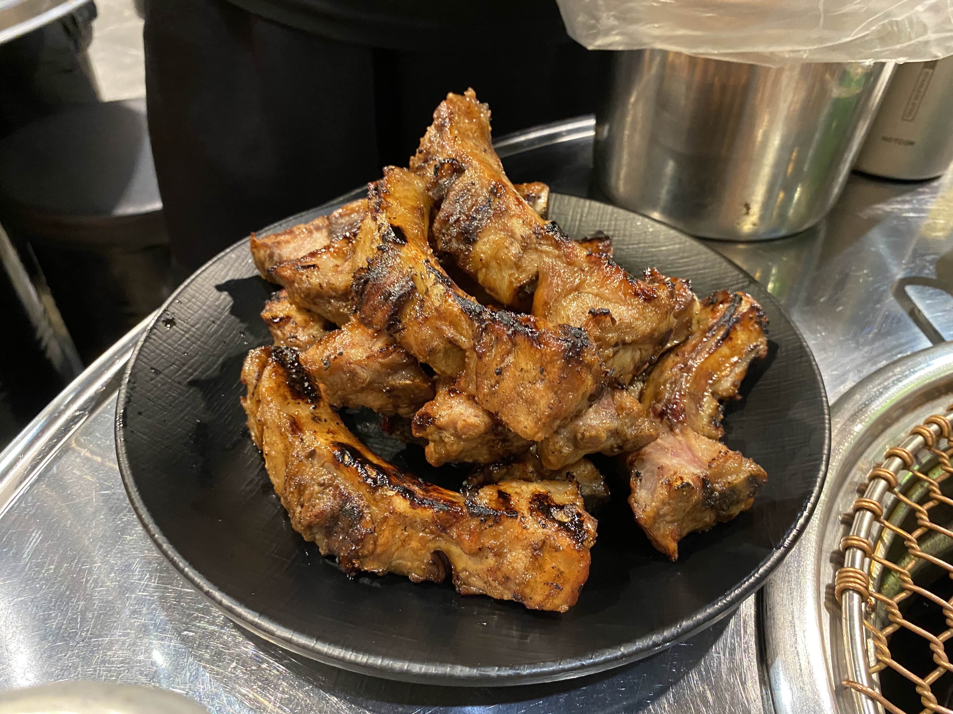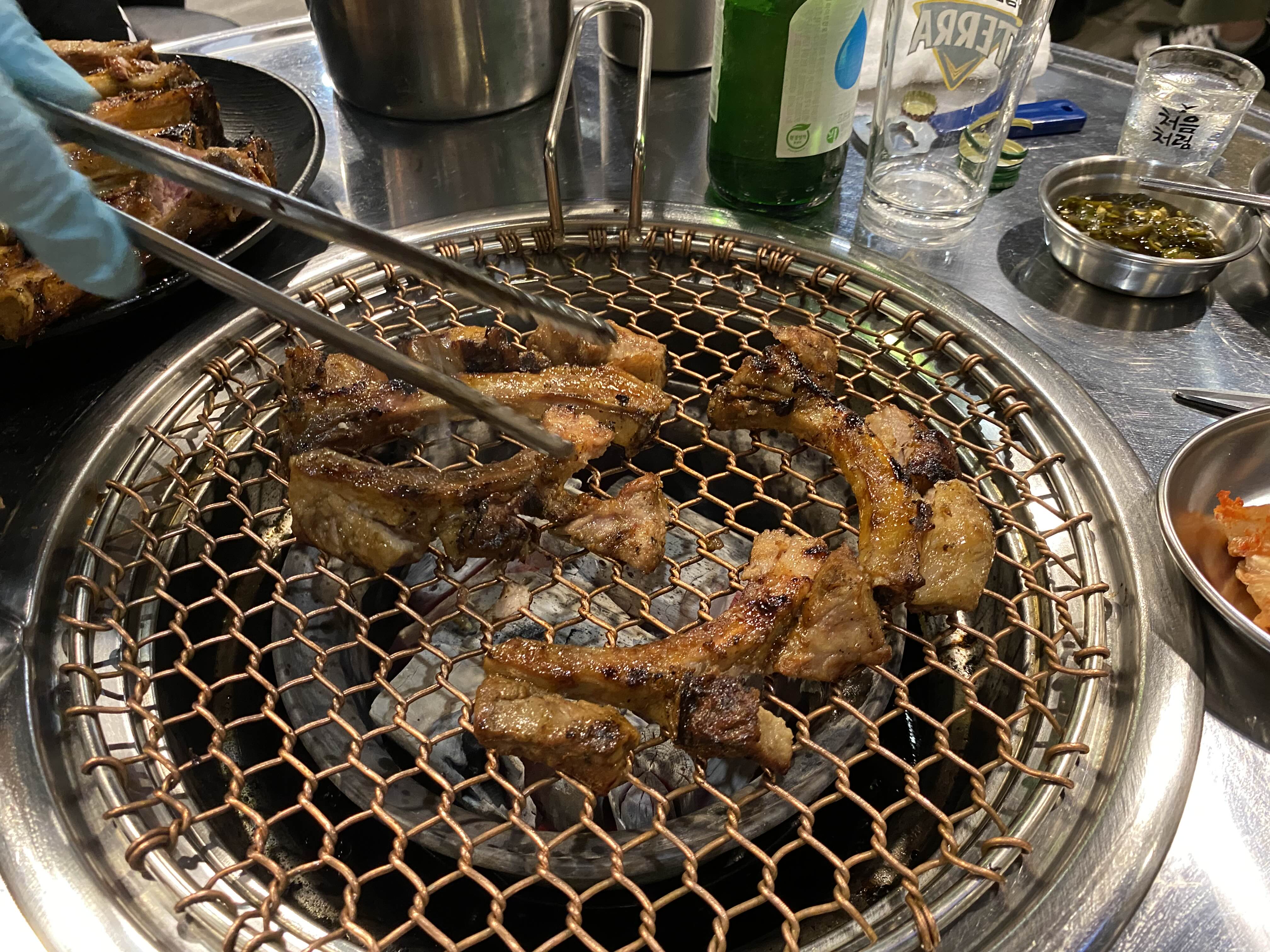 소스 묻힌 등갈비가 불판 위에 구워지면서