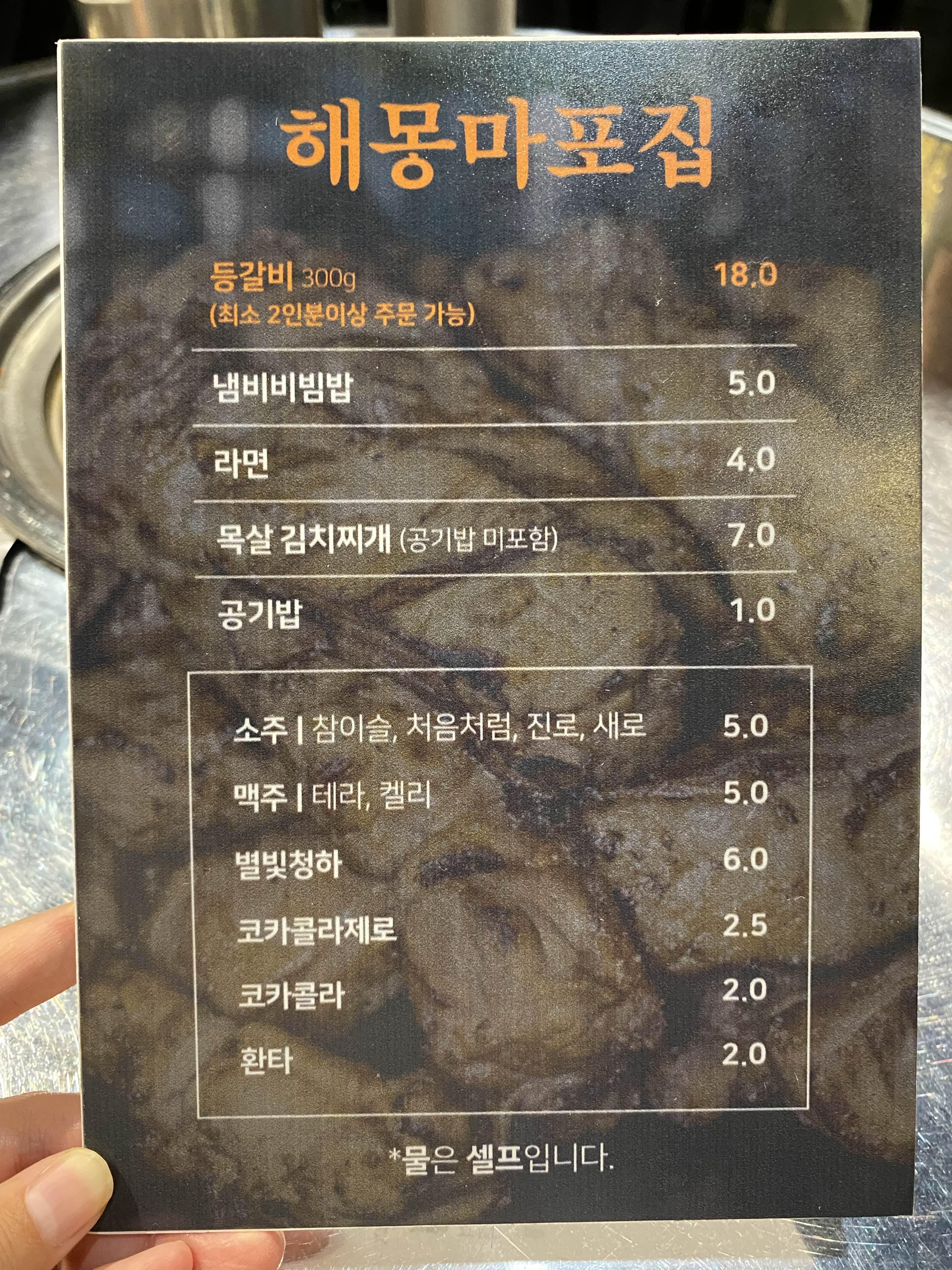 해몽 마포점은 오로지 등갈비만 가능하며