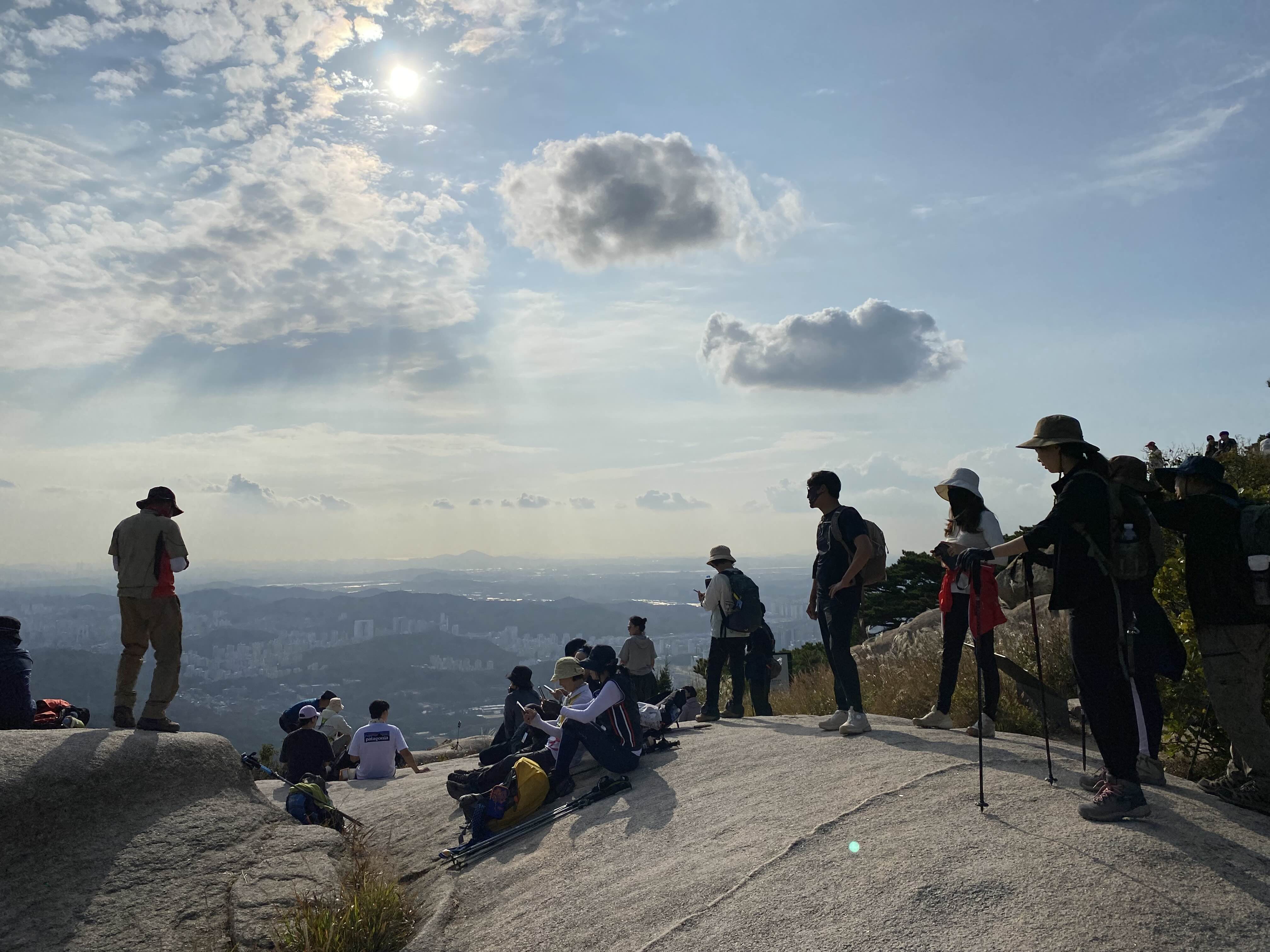 등산객 무리를 따라 걸으면