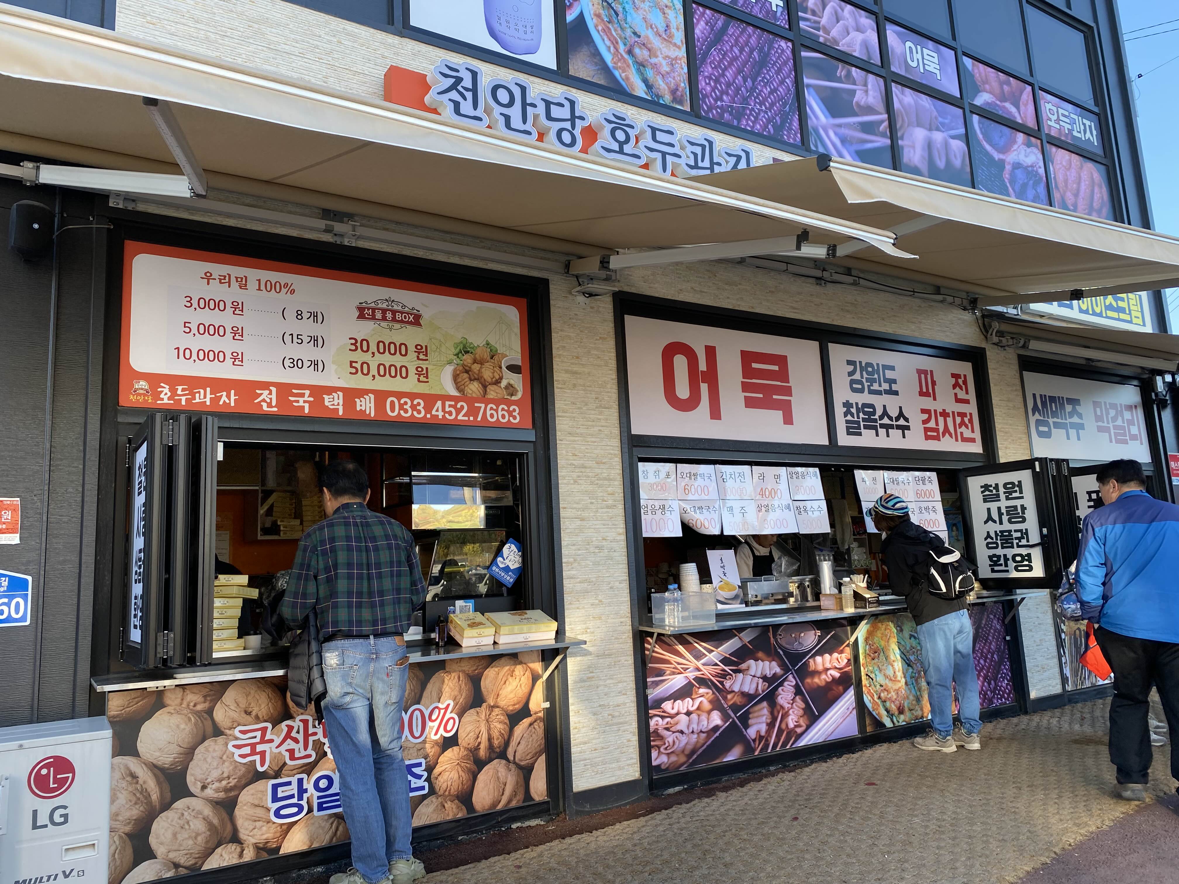 철원38빵, 호두과자, 어묵, 파전에 김치전까지