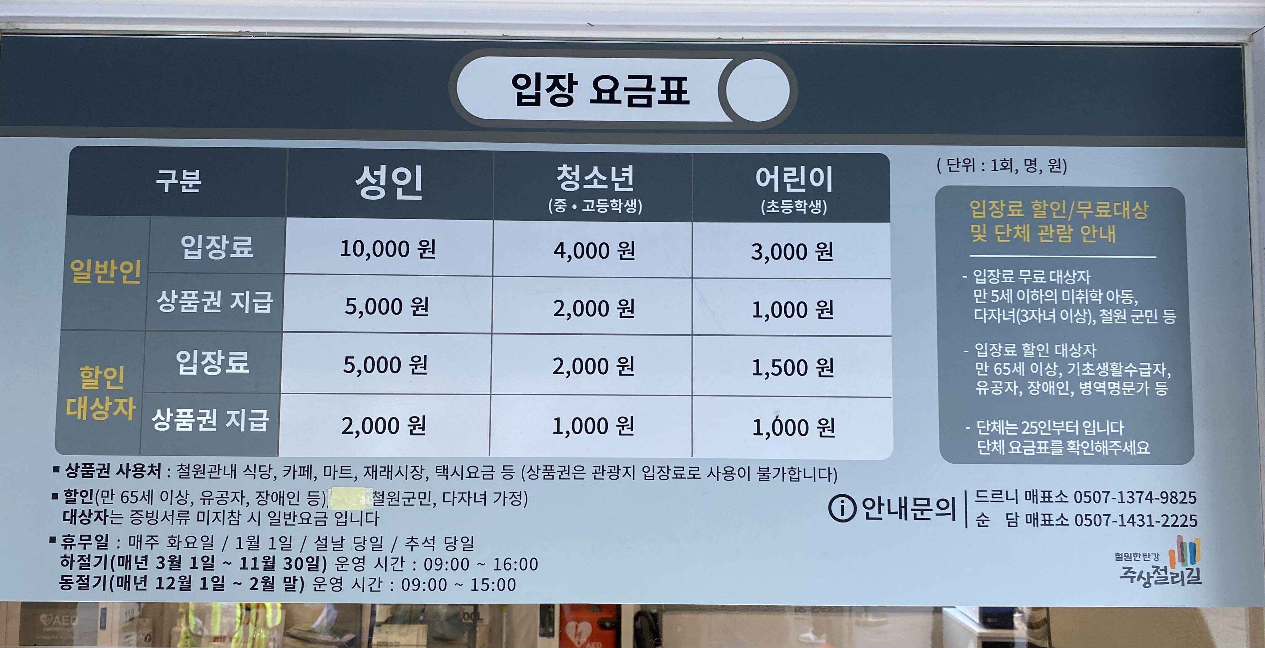 하절기 09:00~18:00 (16시 입장마감)