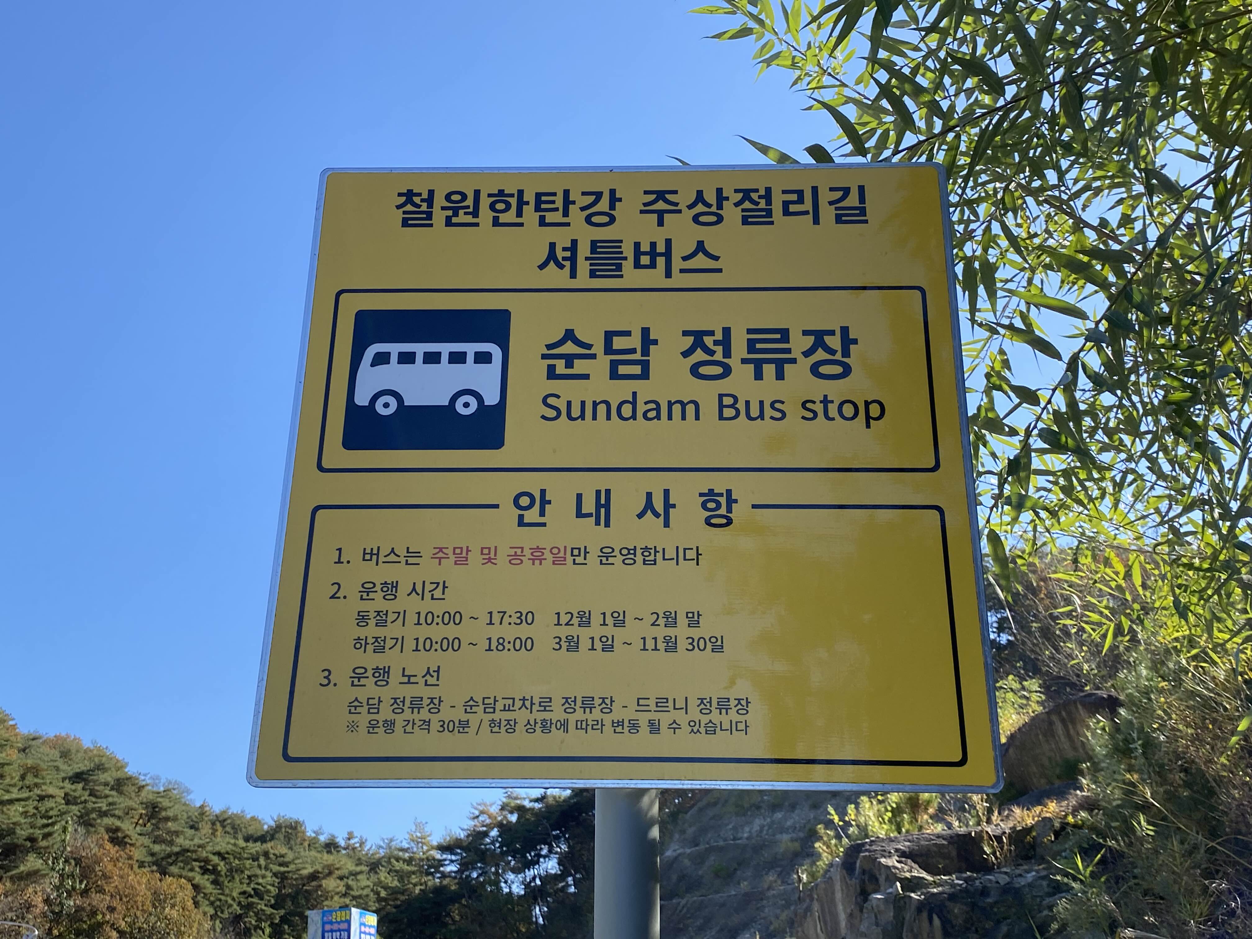 셔틀버스는 주말 및 공휴일에만 운영하며