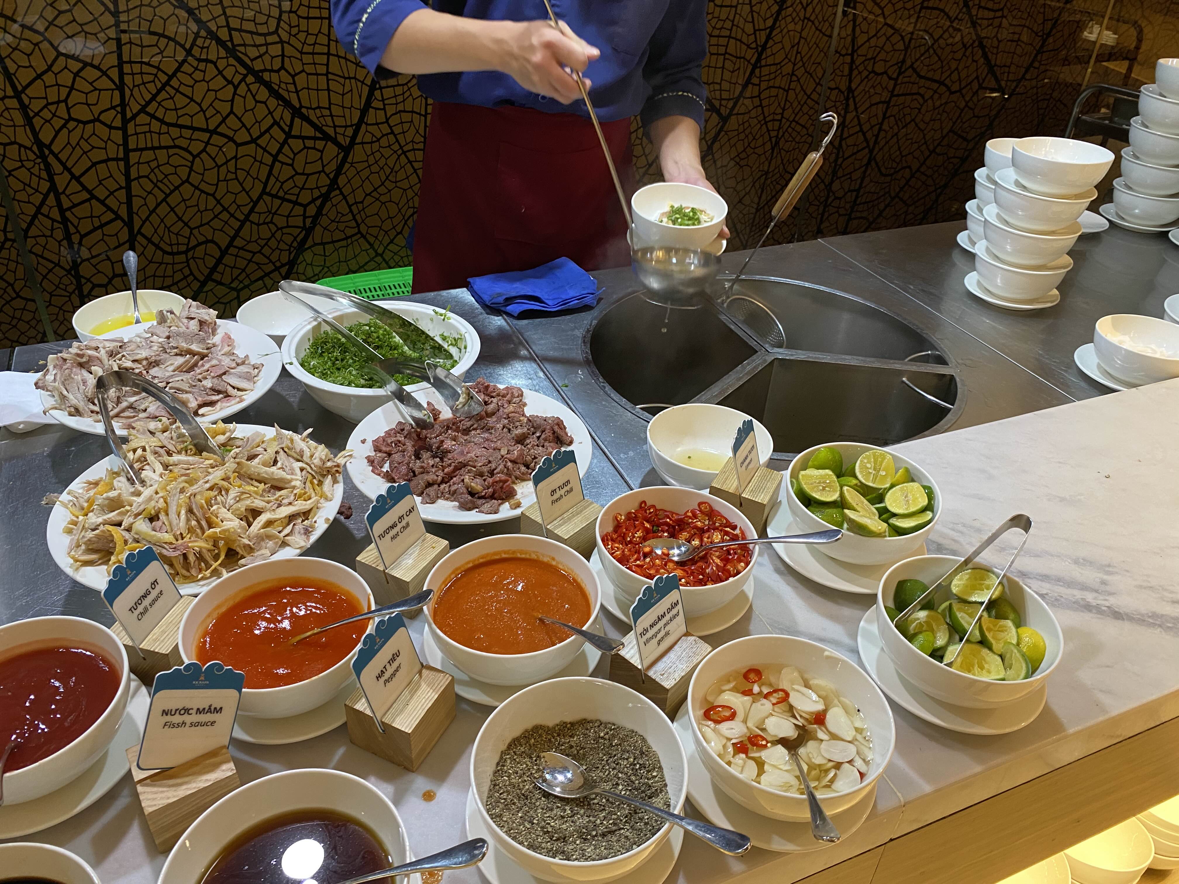 쌀국수는 닭고기, 돼지고기, 소고기 중에 고를 수 있다.