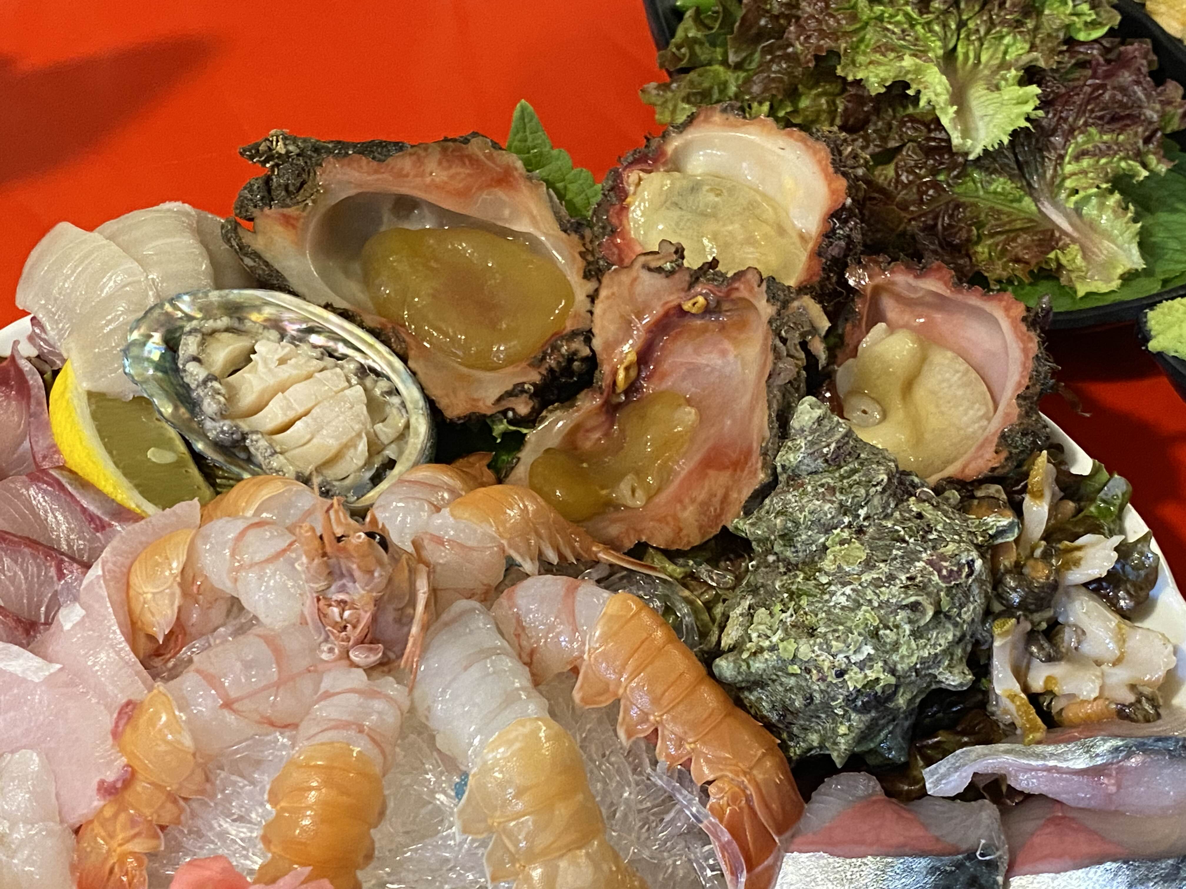 방어 광어 도미 고등어 뿔소라 돌멍게 전복