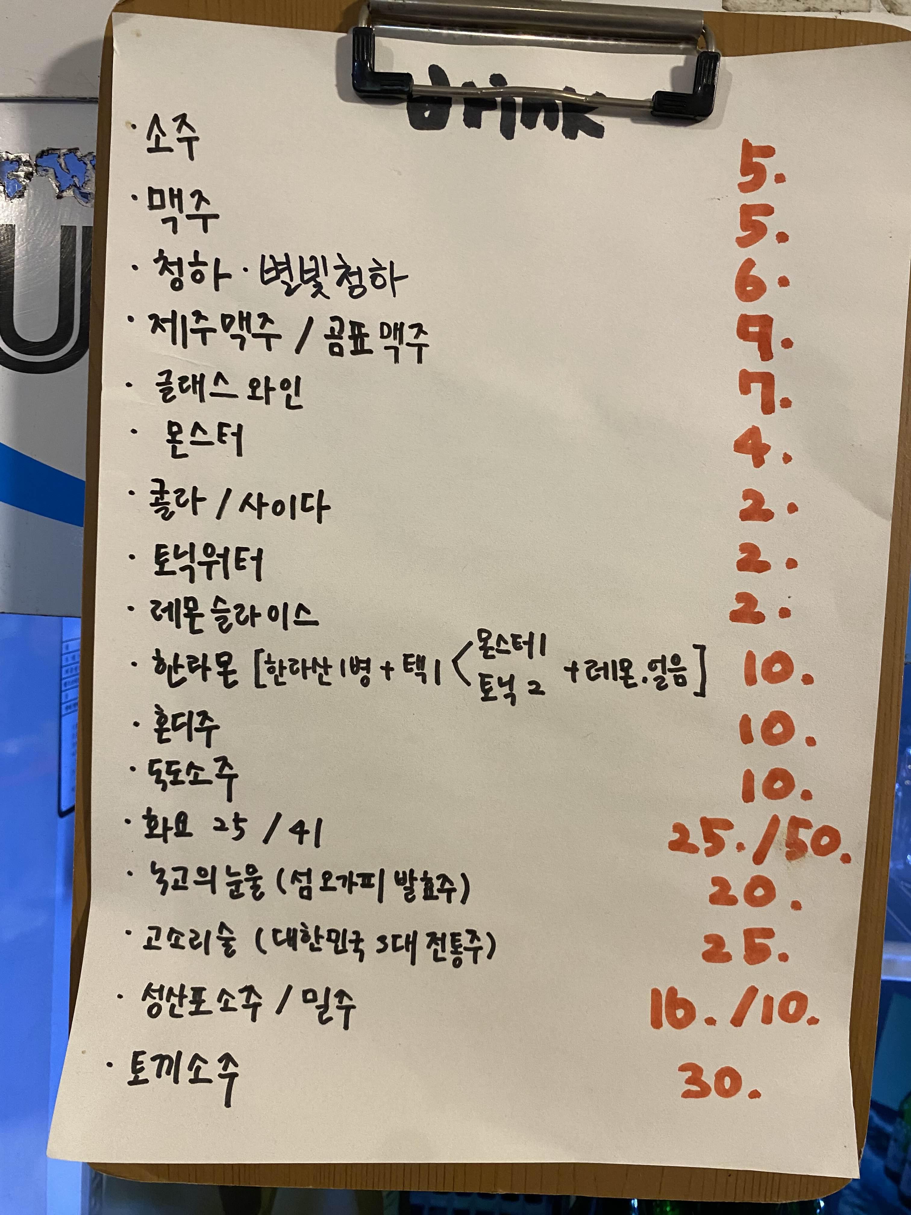 메뉴판은 이렇게 자유롭게 붙어있는데