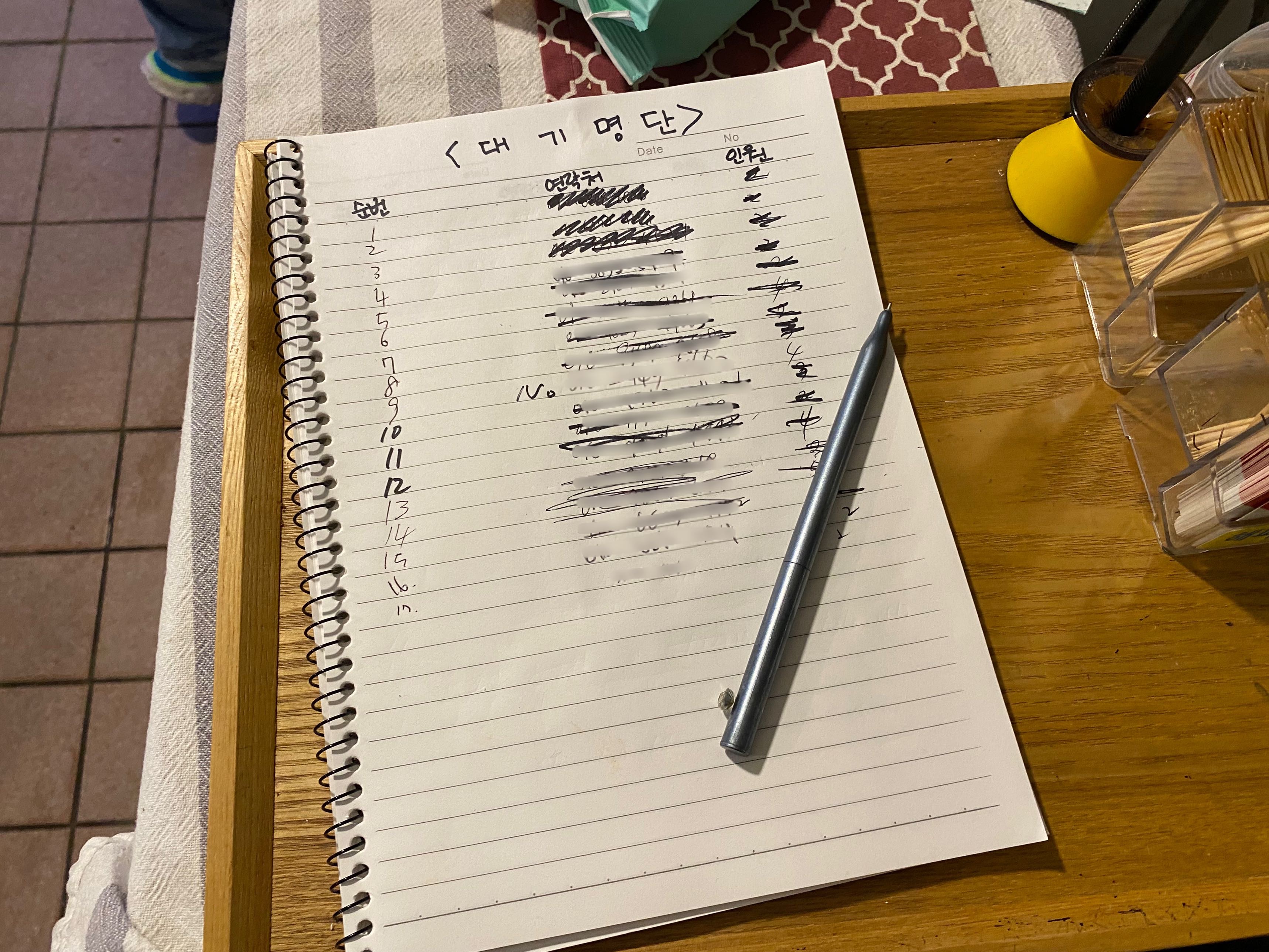 매장에서 대기명단에 전화번호를 남기고 오면