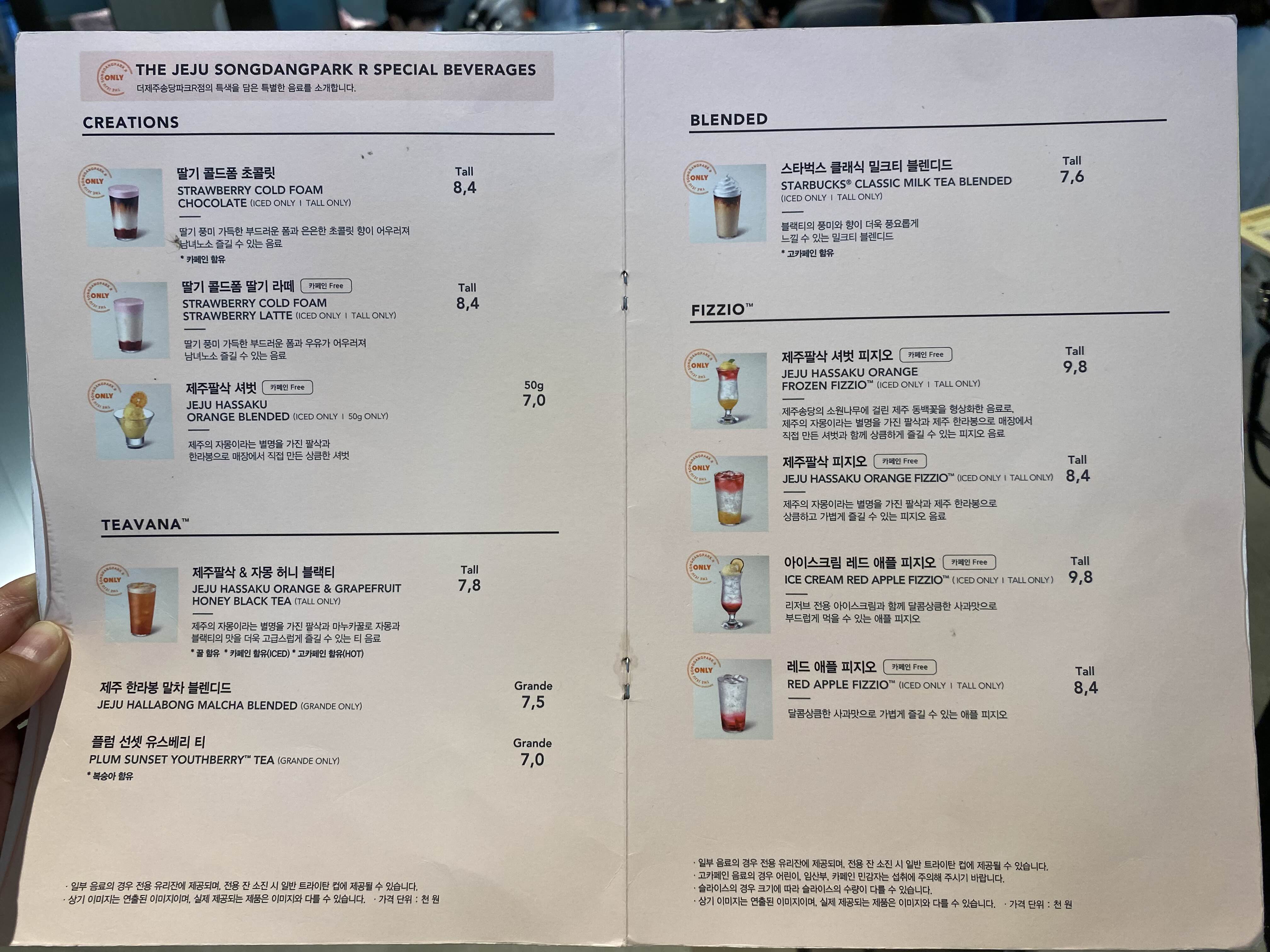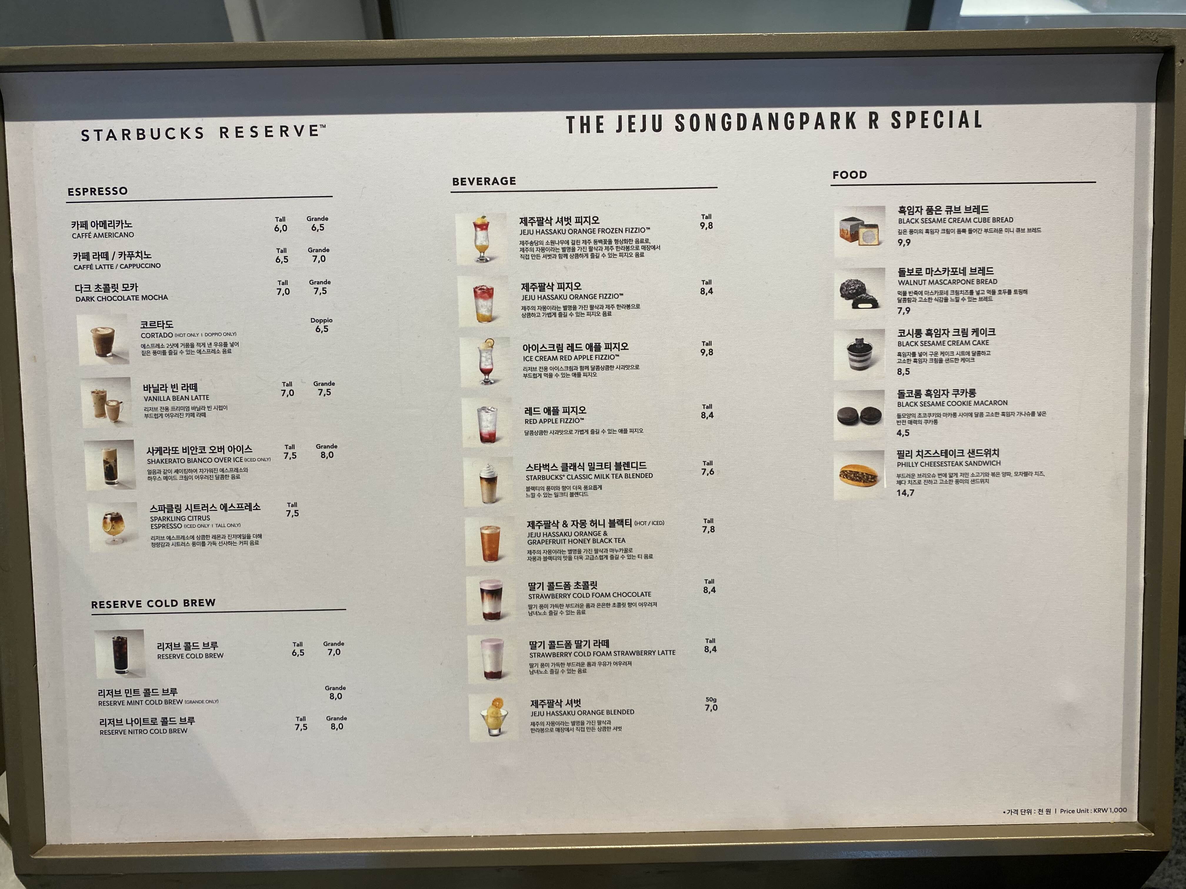 스타벅스 더제주송당파크R점 메뉴