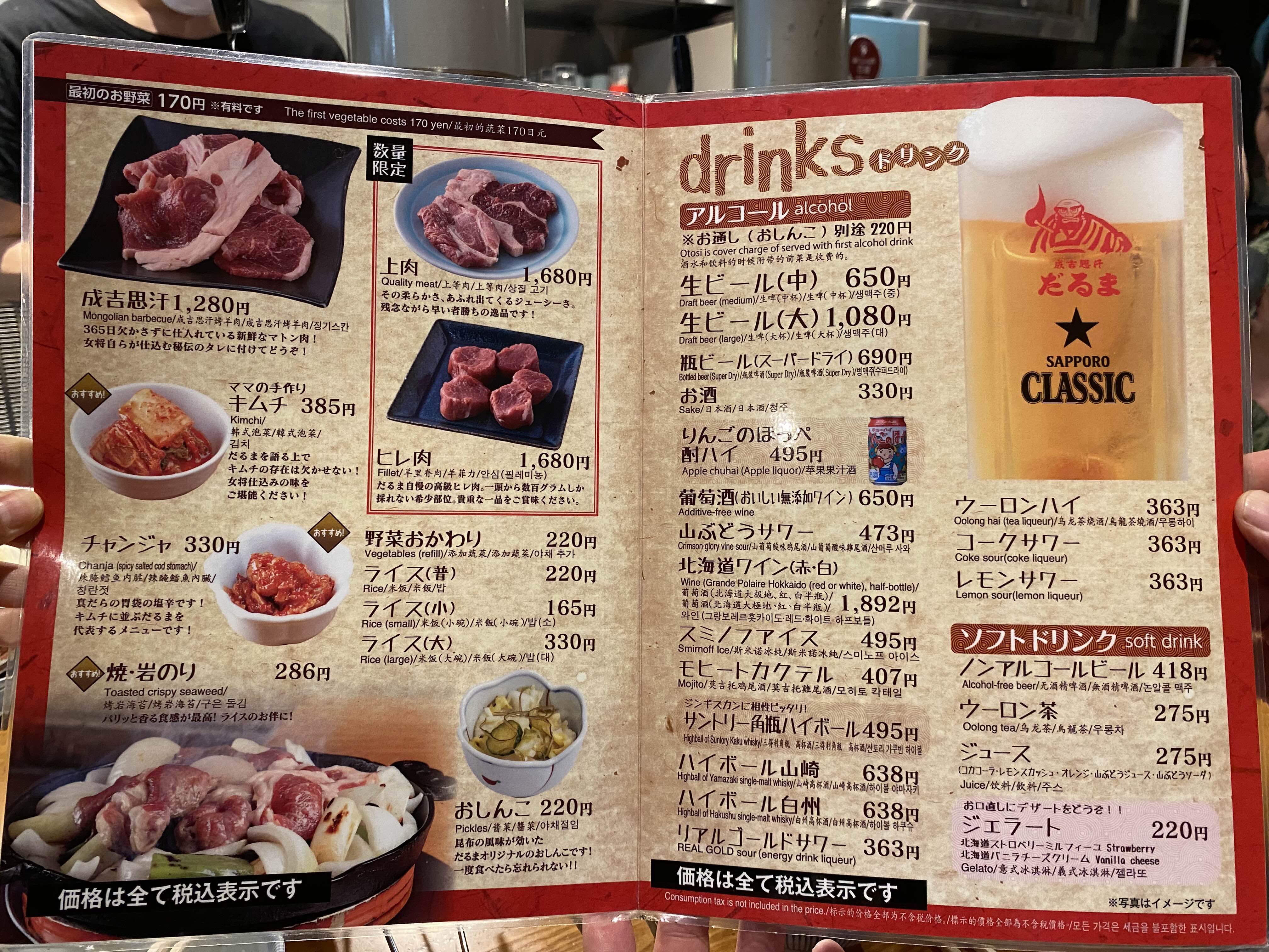 다루마의 메뉴.