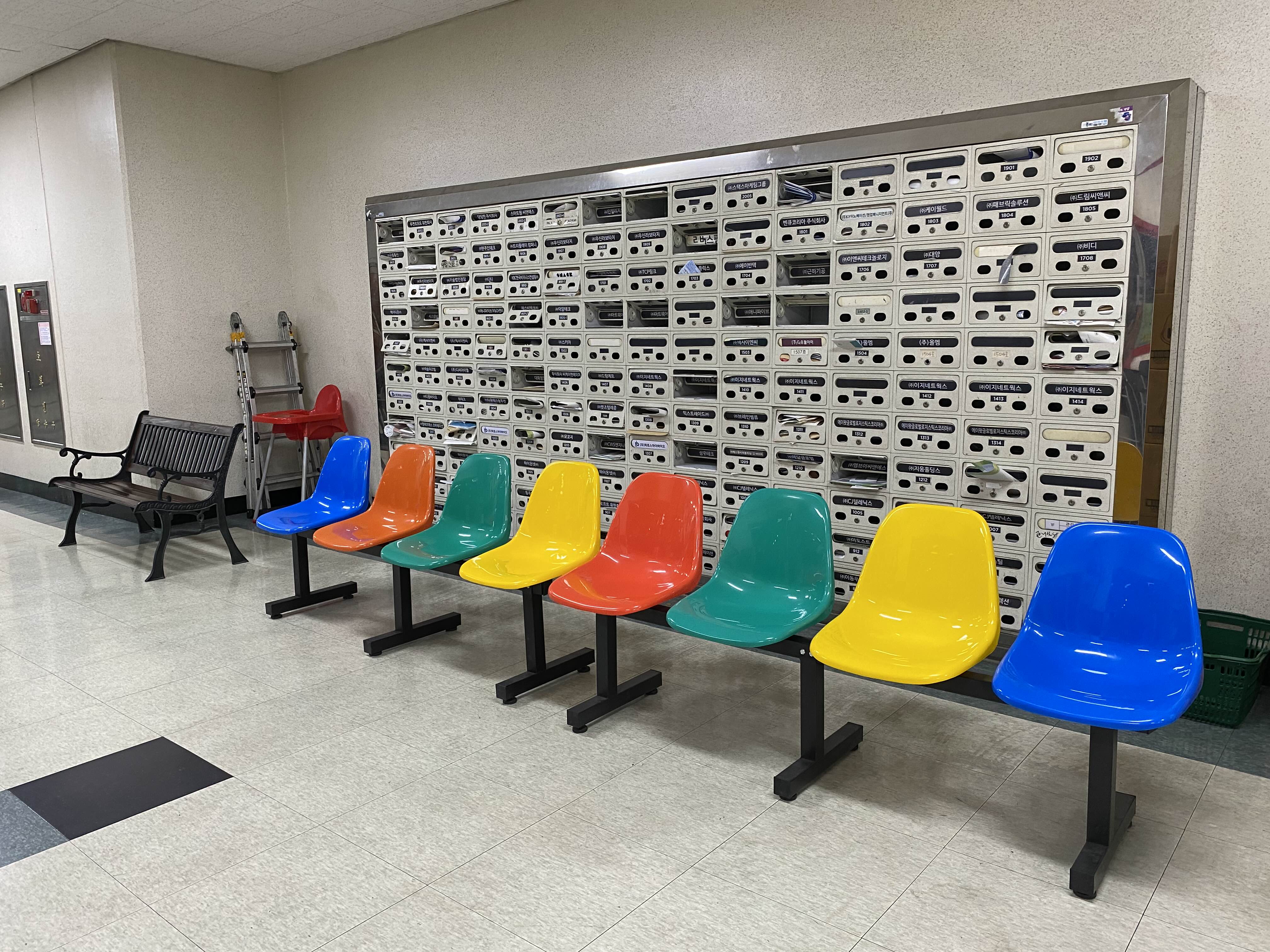 가게 앞 대기좌석들.