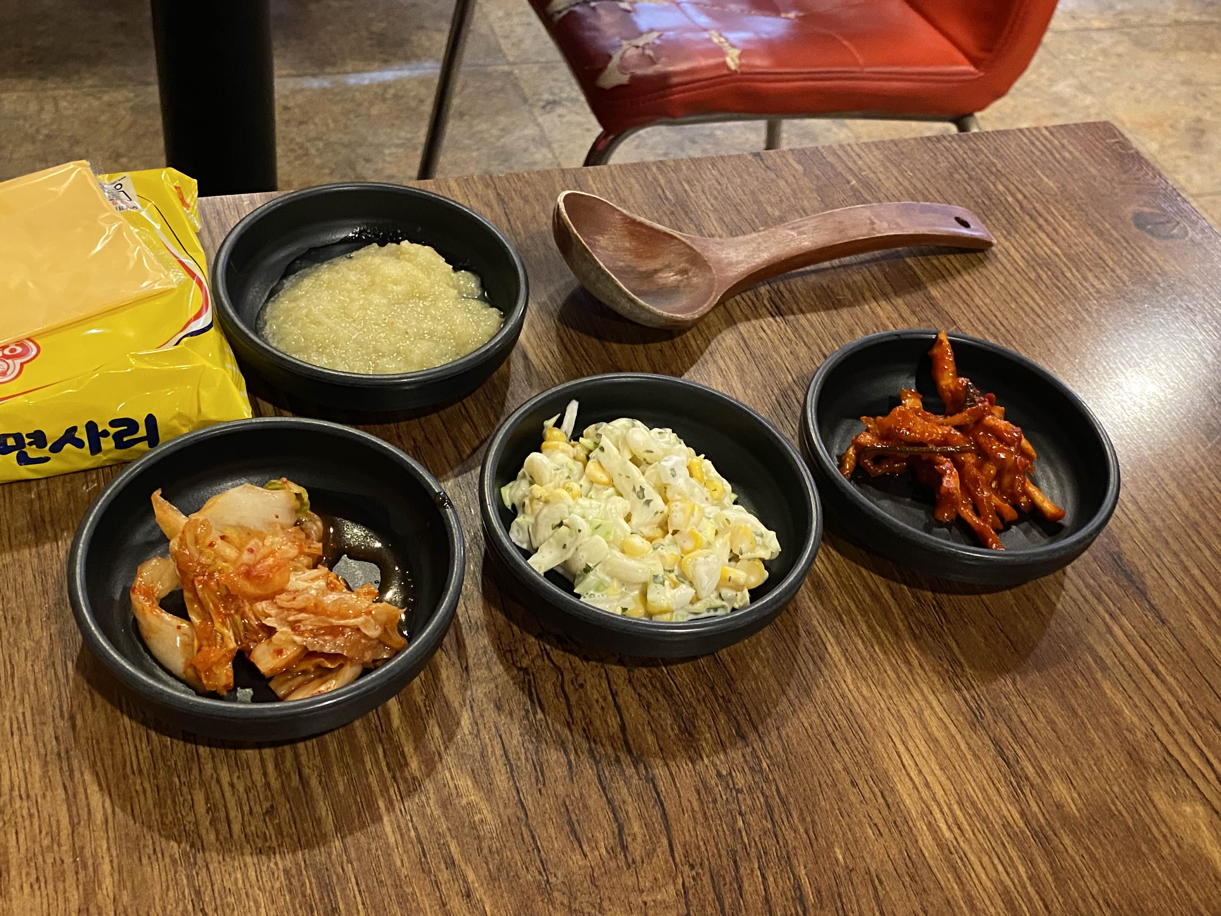낭만 부대찌개의 킥인 마늘소스와 라면사리, 치즈.