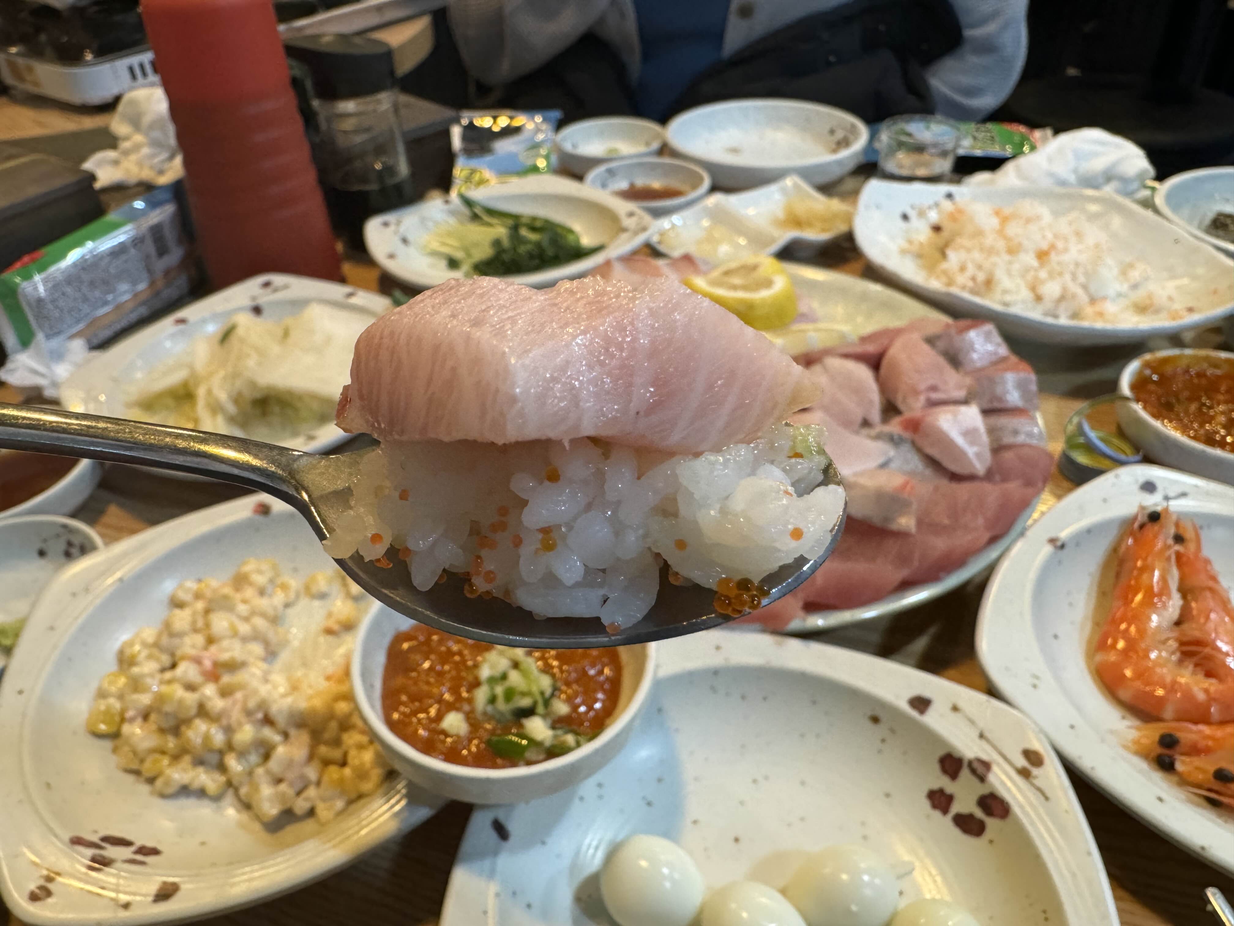 횟집에서 빠질 수 없는 콘샐러드.